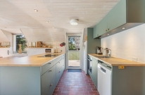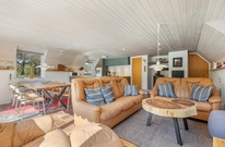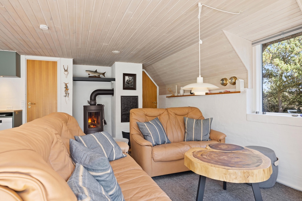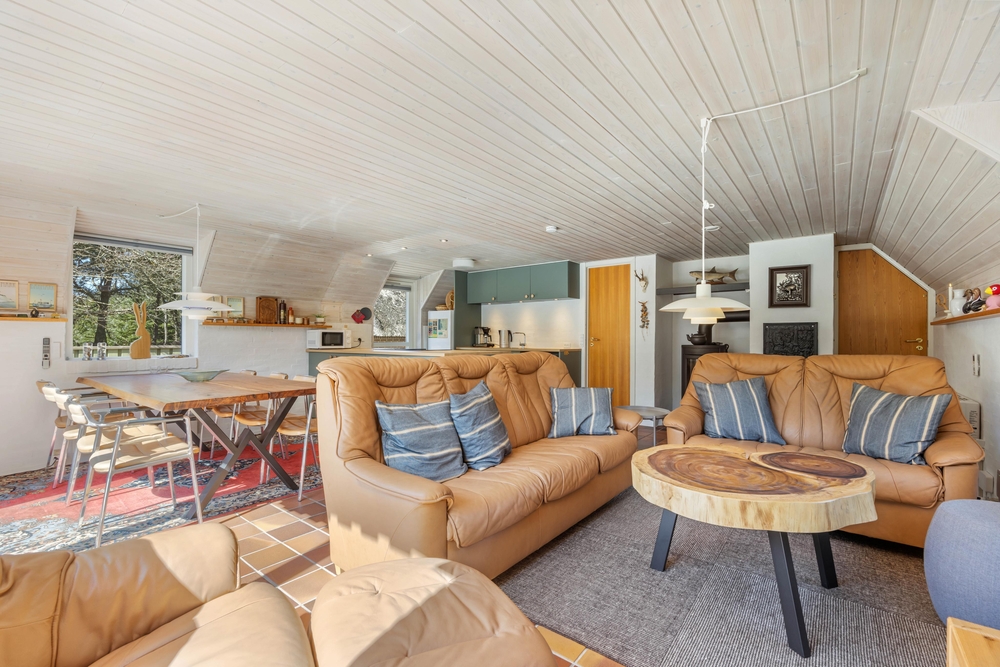 Det klassiske sommerhus har efter renoveringen bevaret sin charme. Man føler sig straks hjemme, og nyder alligevel godt af de moderne faciliterer. I det åbne køkken er der alt, hvad I behøver for at forkæle hinanden med lækre retter. I opholdsstuen med gulvvarme kan man fra spisepladsen følge med i alt, hvad der sker i både køkken og sofagruppe. Læs en knitrende morgenavis imens kaffen brygger i køkkenet, og ilden i brændeovnen giver ekstra varme og feriestemning til hele opholdsområdet. Med Smart-TV kan i holde en hyggelig filmaften med hele familien.