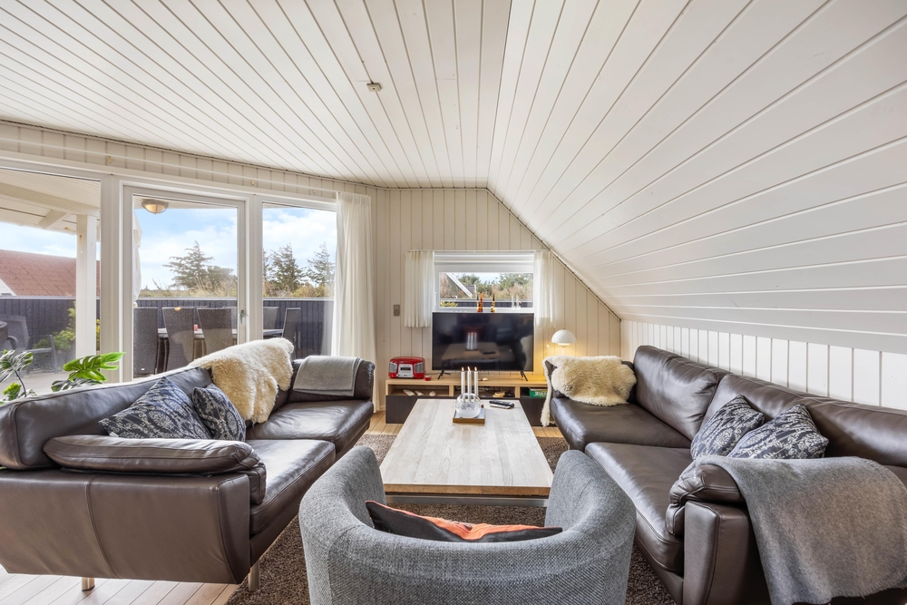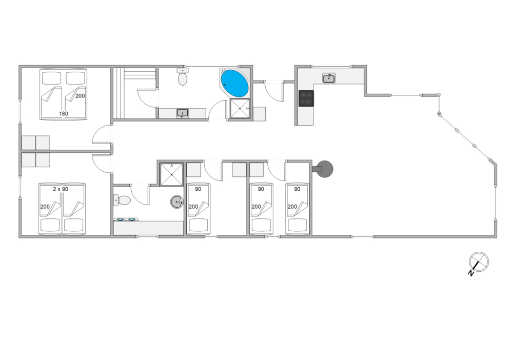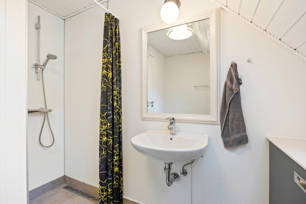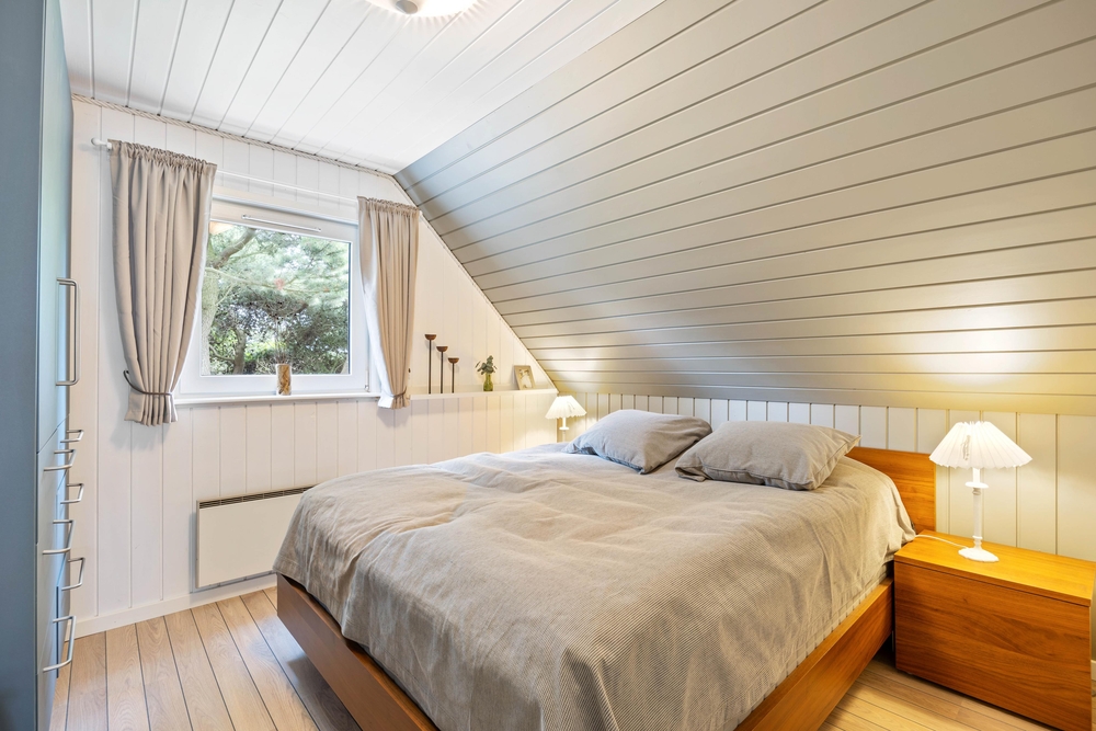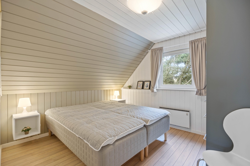 Det hyggelige og charmerende sommerhus er klassisk indrettet. Med en personlig og hjemlig stil, vil I altid føle jer godt tilpas. Heraf er der 8 sengepladser fordelt på 4 værelser, hvor jeres familie kan lade op til den næste dags aktiviteter. Med 2 dobbeltsenge og 4 enkeltsenge kan I nyde en komfortabel nat. For at fuldende jeres afslappende og rolige ferie er der installeret et indendørs spabad og sauna på det ene af badeværelserne. Her kan I nyde en behagelig varme ? også fra gulvvarmen.