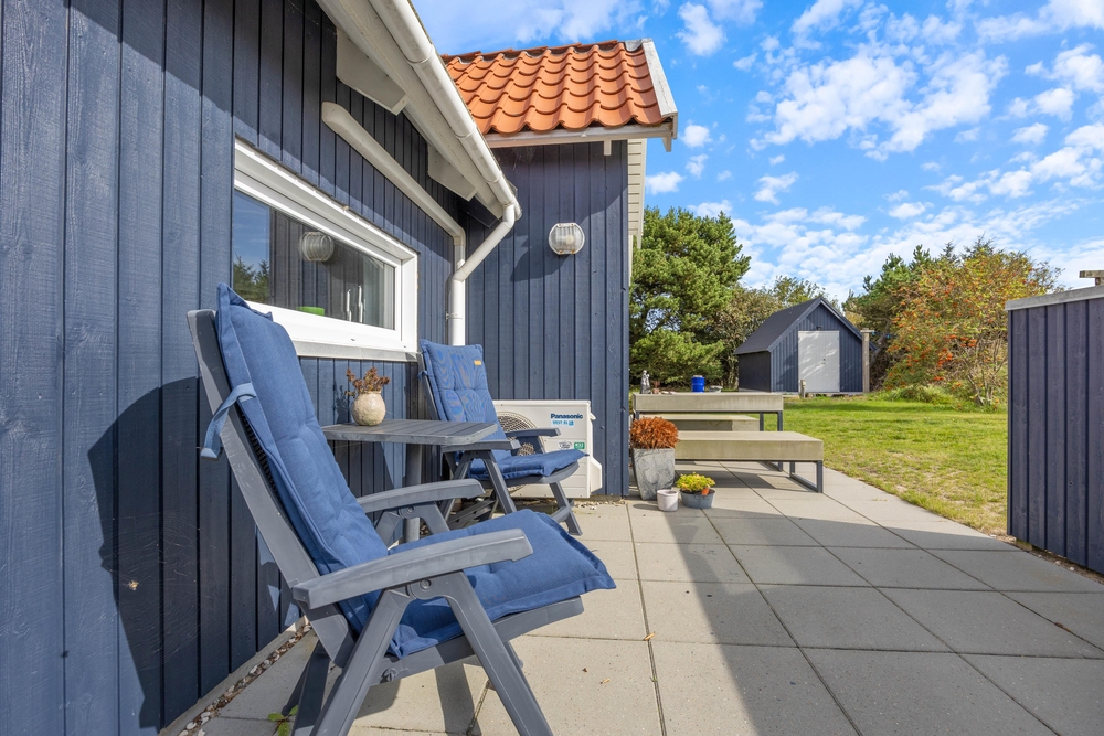 Sommerhuset ligger på en af Klegods karakteristiske naturgrunde omringet af marehalm, træer og hyggelig stemning. Så hvis I nyder den afslappende atmosfære fra naturen, vil I helt sikkert kunne lide den skønne terrasse tilhørende sommerhuset.