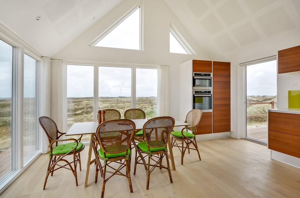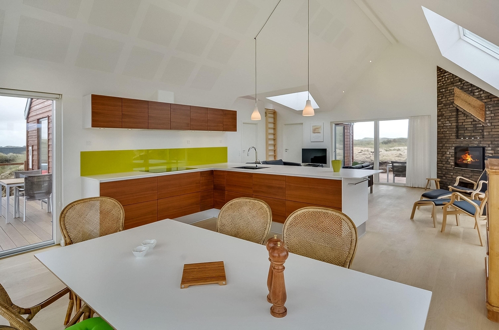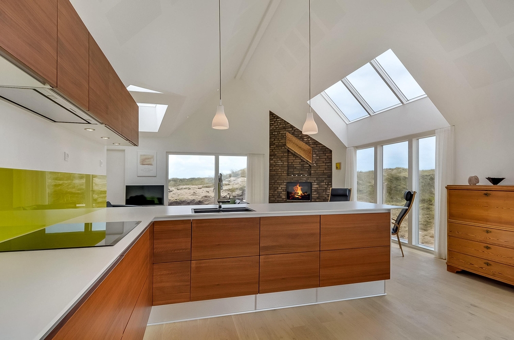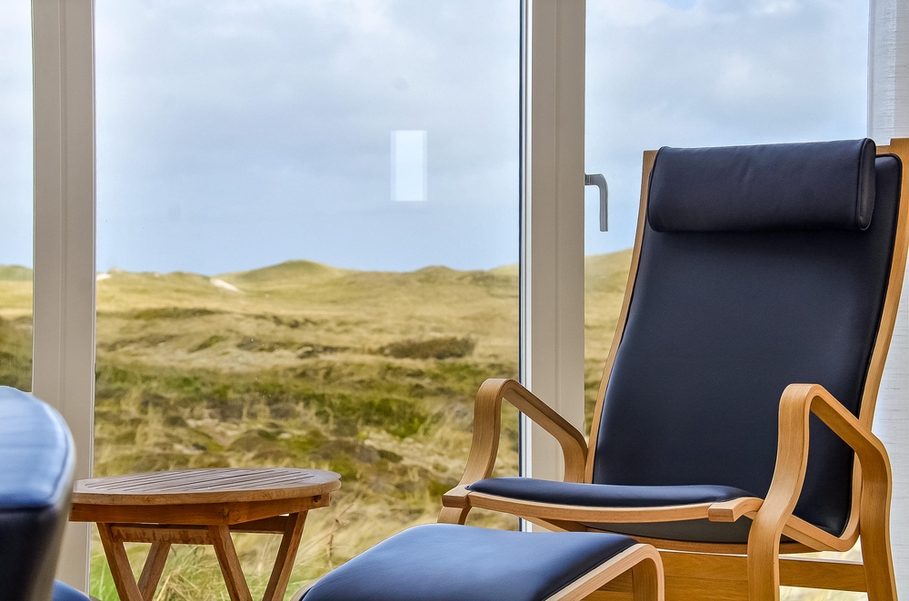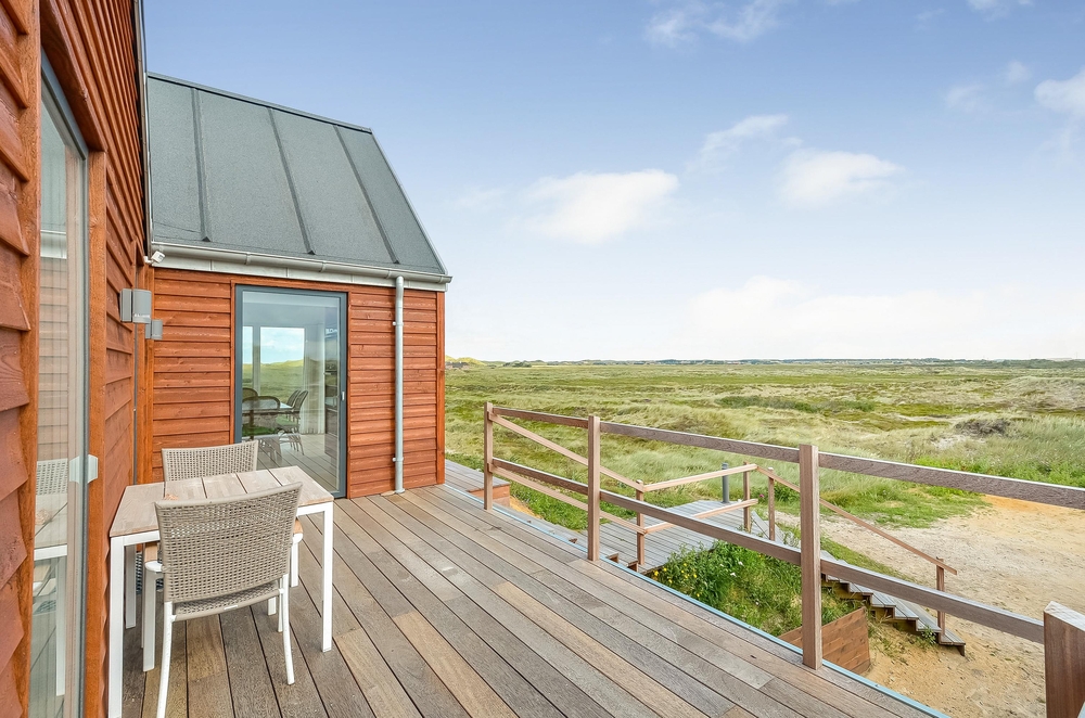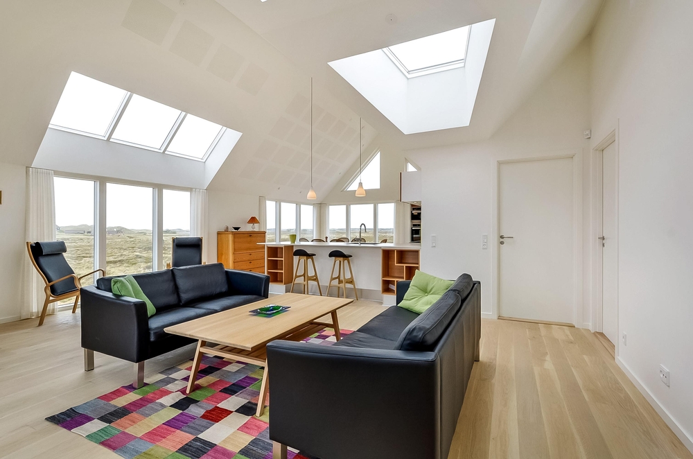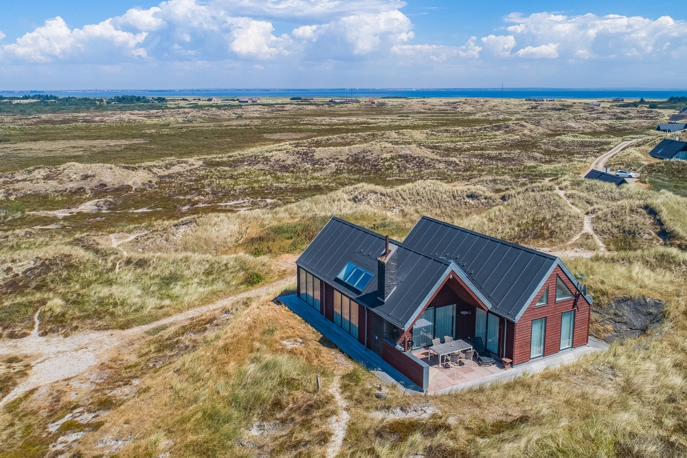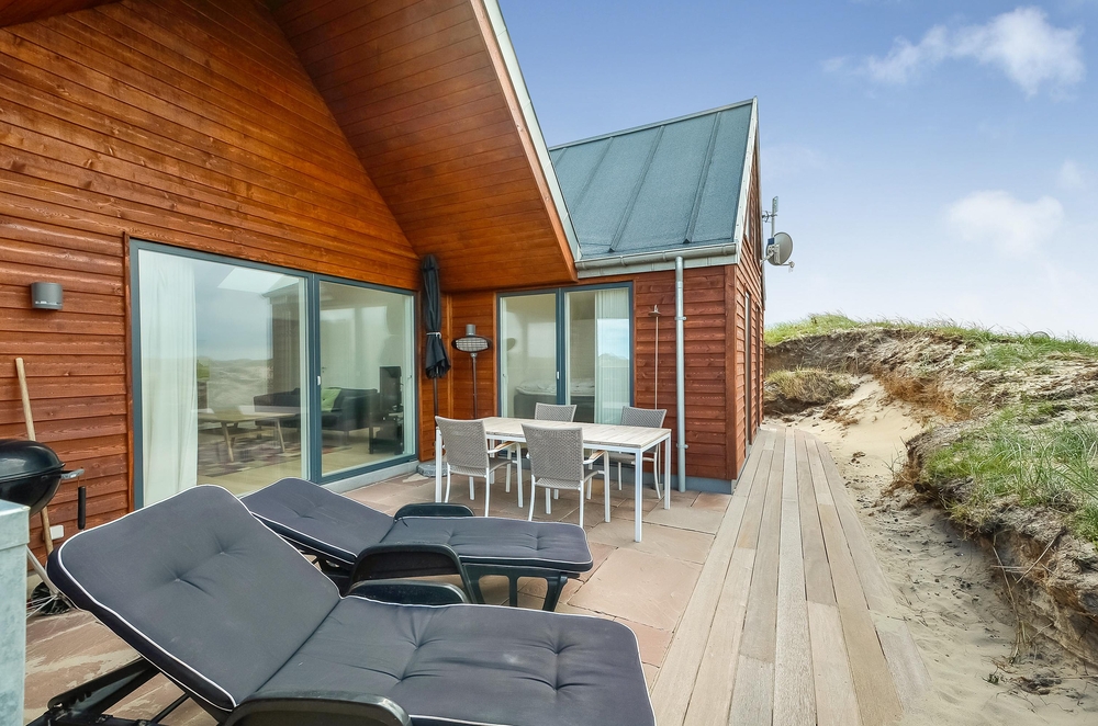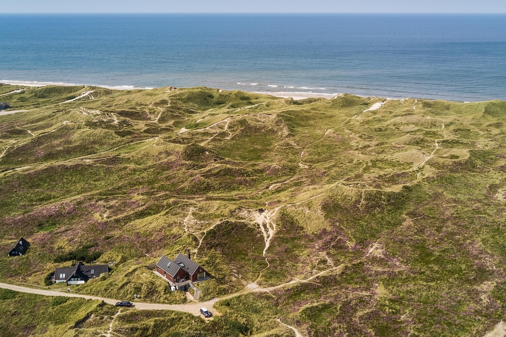 Meget få huse har så unik en beliggenhed som dette hus. Der er ikke kun beliggende i yderste klitrække, men det er også højt placeret, så du har en smuk udsigt. Mod vest og mod nord er der klitter så langt øjet rækker, og mod øst er der et flot blik over Ringkøbing Fjord. De store vinduespartier og loft til kip giver et vidunderligt lys i huset samt følelsen af, at du næsten er helt alene i landskabet. Der er terrasse hele vejen rundt om huset, så du nemt kan finde en god plads i sol og læ.