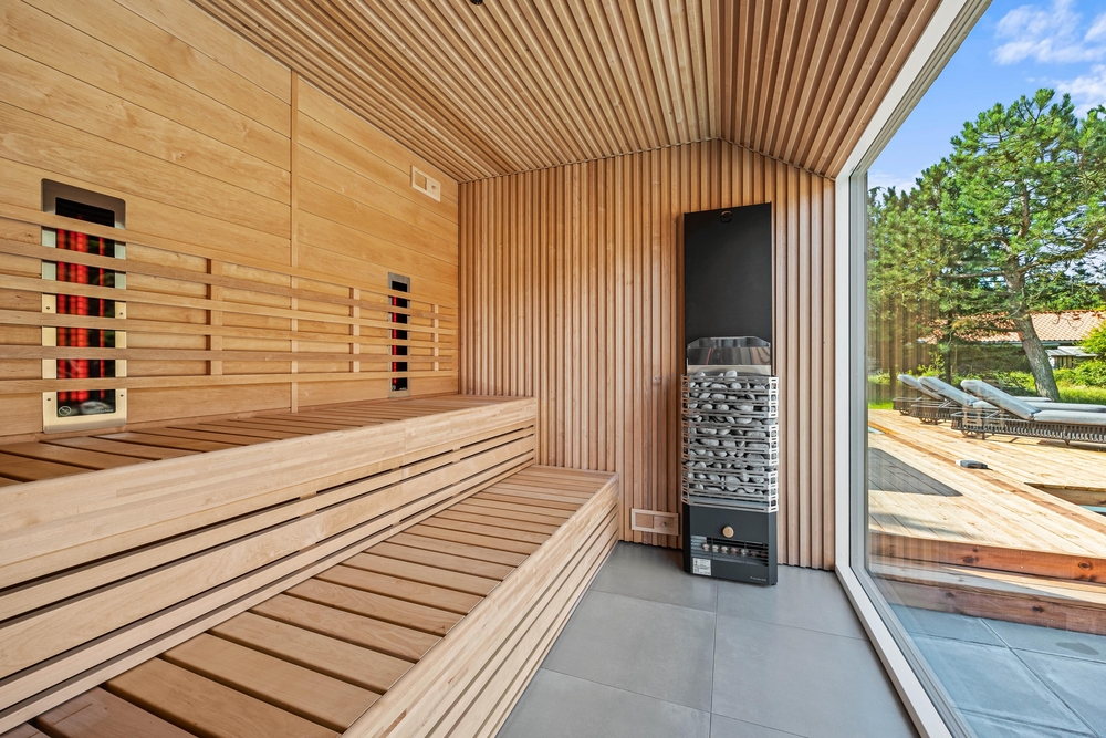 Endnu et højdepunkt i feriehuset er den dejlige sauna, hvor I kan nyde afslappende stunder i varmen og få kroppen helt ned i gear. Det er også skønt med en tur i saunaen efter en gåtur i området eller en tur ved det skønne Vesterhav.