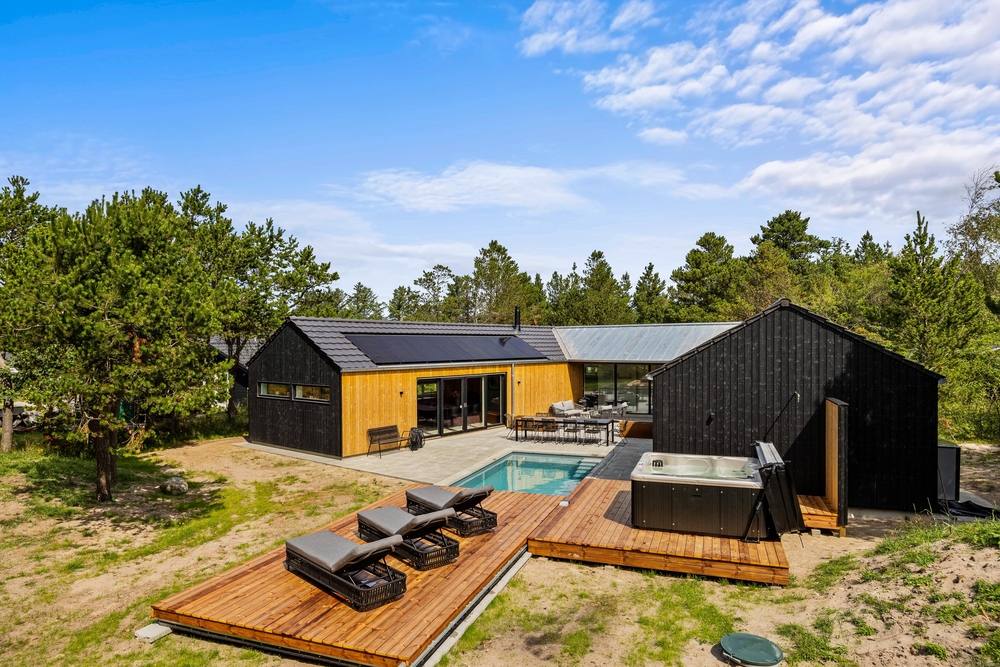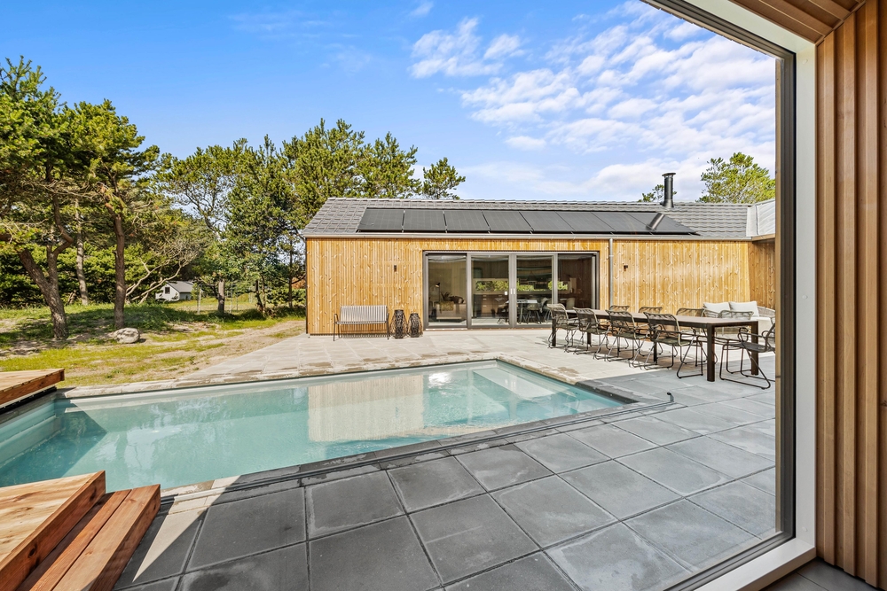Hvis I er flere familier eller én stor vennegruppe, der er på udkig efter den perfekte base til jeres næste ferie, så bør I helt sikkert tage et kig på dette skønne luksussommerhus på Ørnevej 23 i Vejers. Dette fantastiske sommerhus rummer nemlig plads til en ferie for op til 10 personer, og her venter jer lidt af hvert! I kan se frem til mange sjove stunder med at bade i den opvarmede udendørs pool eller med at spille bordtennis eller billard. I kan også glæde jer til at nyde masser af afslapning i udespaen og i saunaen. Sommerhuset har derudover en dejlig placering med 500 meter til nærmeste indkøbsmulighed og 1,5 kilometer til stranden. På jeres ferie i sommerhuset er op til 2 hunde også hjerteligt velkomne, og kører I el-bil, kan den oplades i sommerhusets ladestik til el-biler.