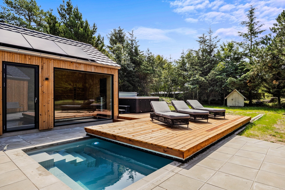 På feriehusets udeområde kan I også hoppe en tur i den 18 kvadratmeter store udepool, som helt sikkert bliver et hit blandt feriens vandhunde, der kan se frem til mange sjove stunder her. Derudover er der også en udebruser, som I kan skylle jer under efter en svømmetur. Udebruser er lukket fra 1. november til 1. april på grund af frostsikring.