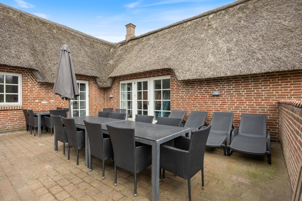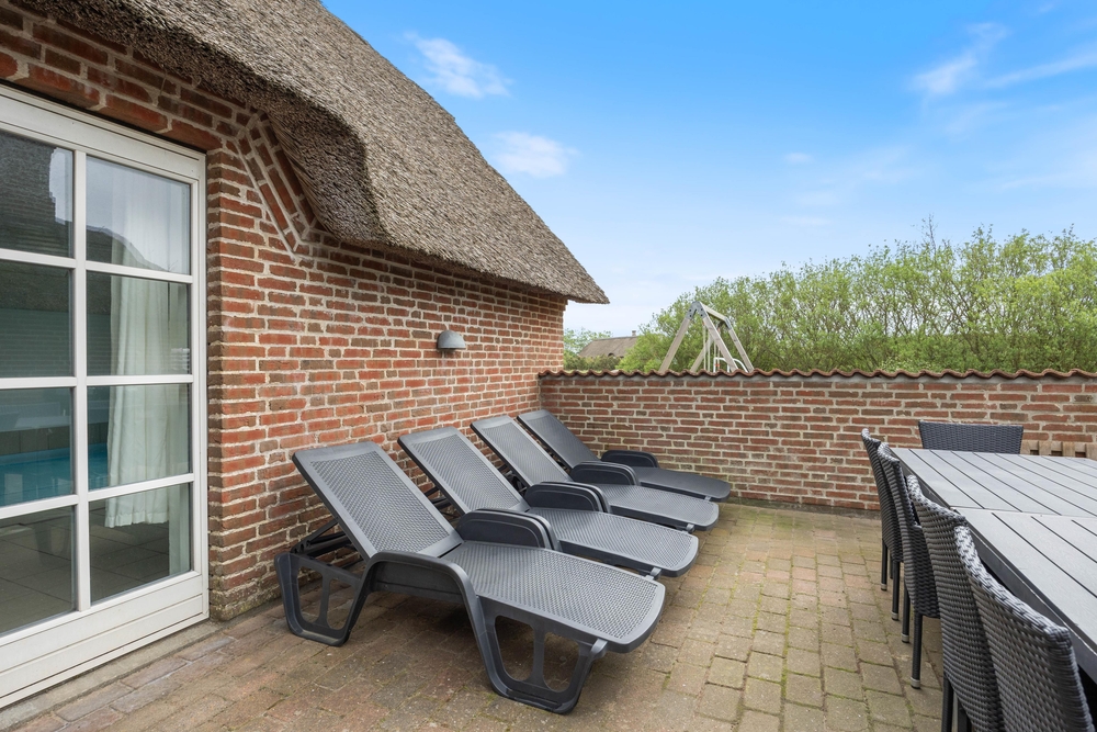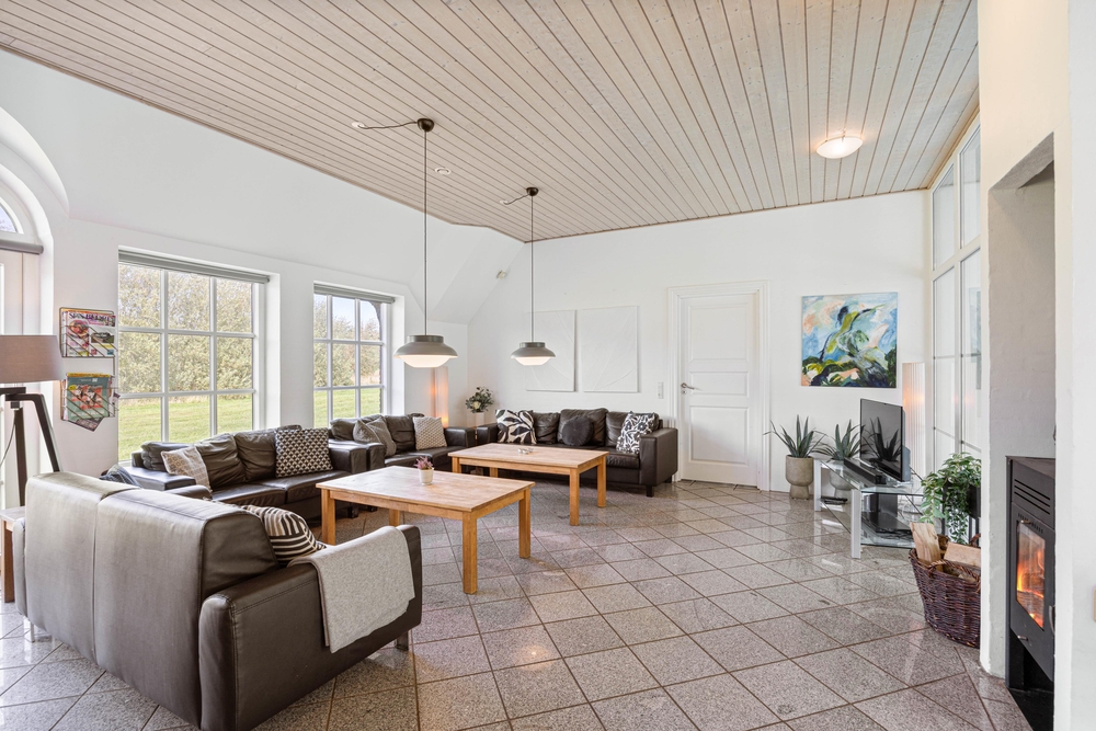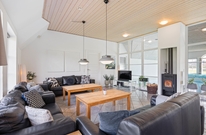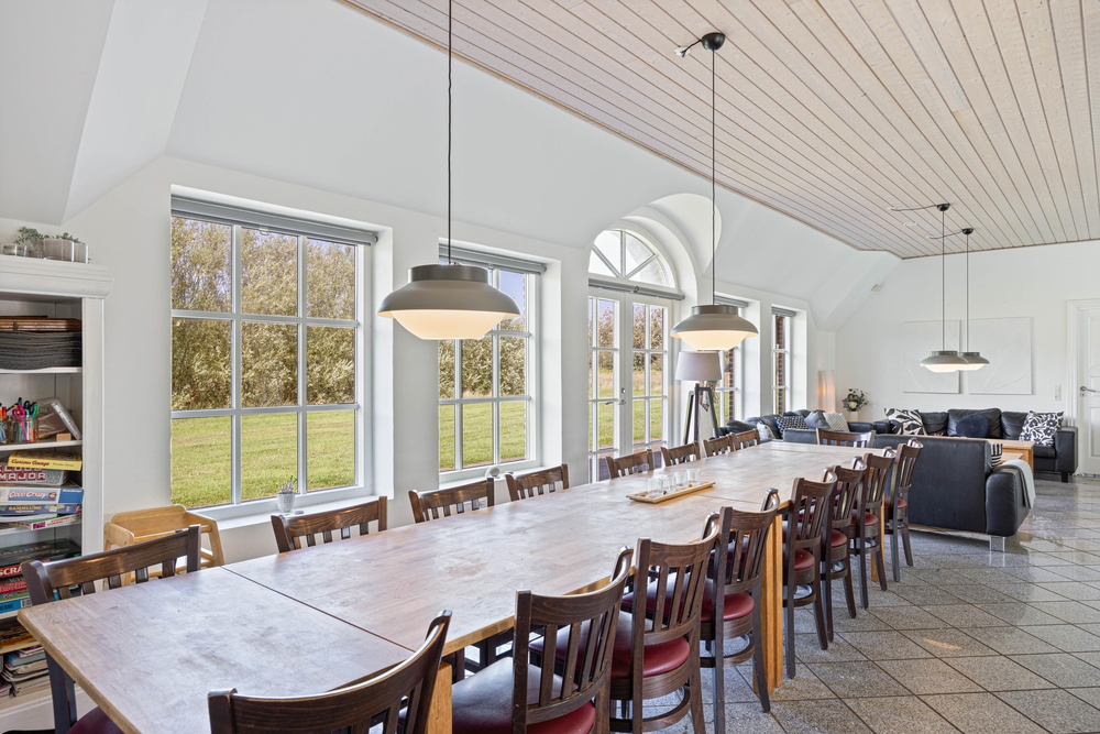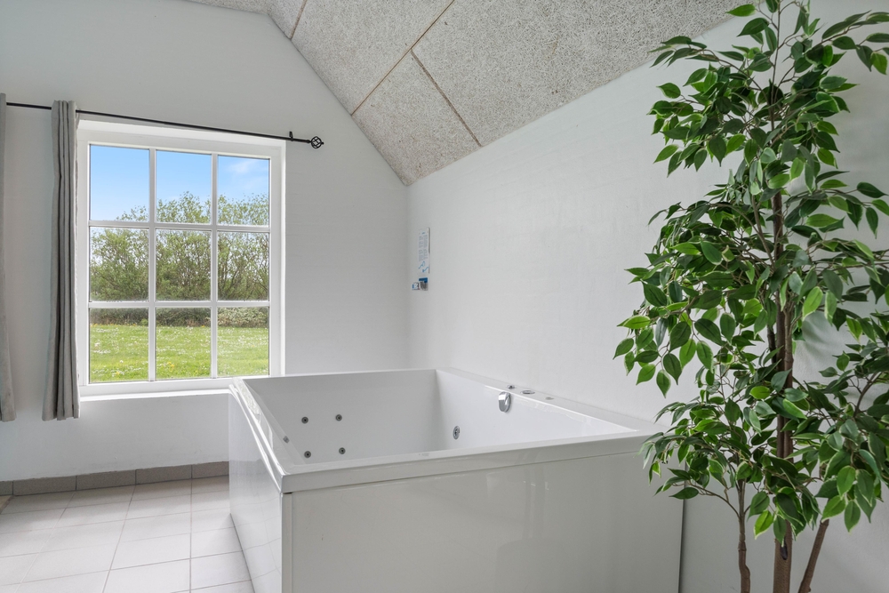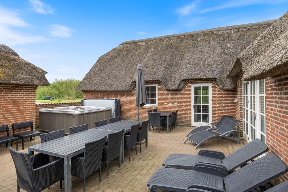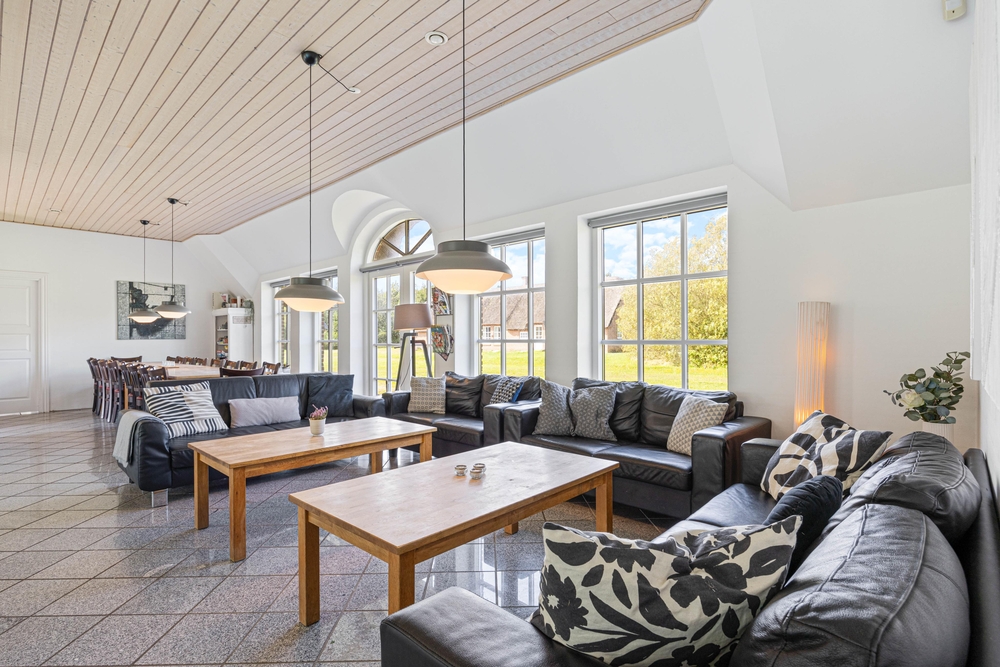 Lige så snart I træder ind i dette dejlige feriehus, kan I straks mærke at jeres ferie er begyndt. Det lyse og åbne køkkenalrum bidrager til en god hjemlig følelse, og de mange muligheder i feriehuset vil forbløffe jer. Uanset om I slapper af i saunaen, svømmer i poolen, slapper af foran den knitrende pejs med en god bog eller lader batterierne op i inde- eller udespaen, er mulighederne mange. I feriehusets store køkken med to ovne og to køleskabe er der rig mulighed for at I kan lave mad til alle folk. Opvasken skal I ikke tænke på, da der står en opvaskemaskine til rådighed.
