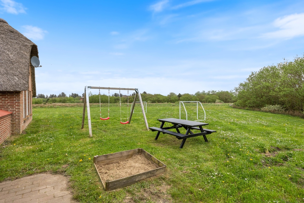 Den 3709 m2 store plænegrund, ligger op til en masse sjov og leg både for store og for små. De små kan have det sjovt på feriehusets tilhørende gynger, eller bygge sandslotte i sandkassen. På de lunere sommeraftener kan I tænde op i grillen og nyde et lækkert måltid på den lukkede og delvist overdækkede terrasse. Om aftenen når mørket er faldet på, vil en uforglemmelig oplevelse være at sætte sig ud i udespaen, og nyde den betagende stjernehimmel, som vil vise sig.