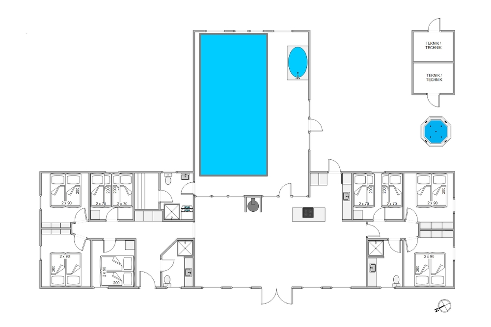 Leder I efter et stort poolhus med masser af plads og komfort? Så vil Feriehuset på Øvej 22 i Vester Husby helt sikkert være et oplagt valg for jer. Feriehuset rummer med sine 259 m2 plads til op til 18 personer, og har pool, sauna og spa. I dette feriehus må I også gerne tage op til 2 husdyr med.