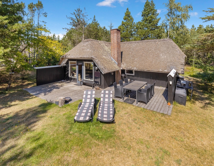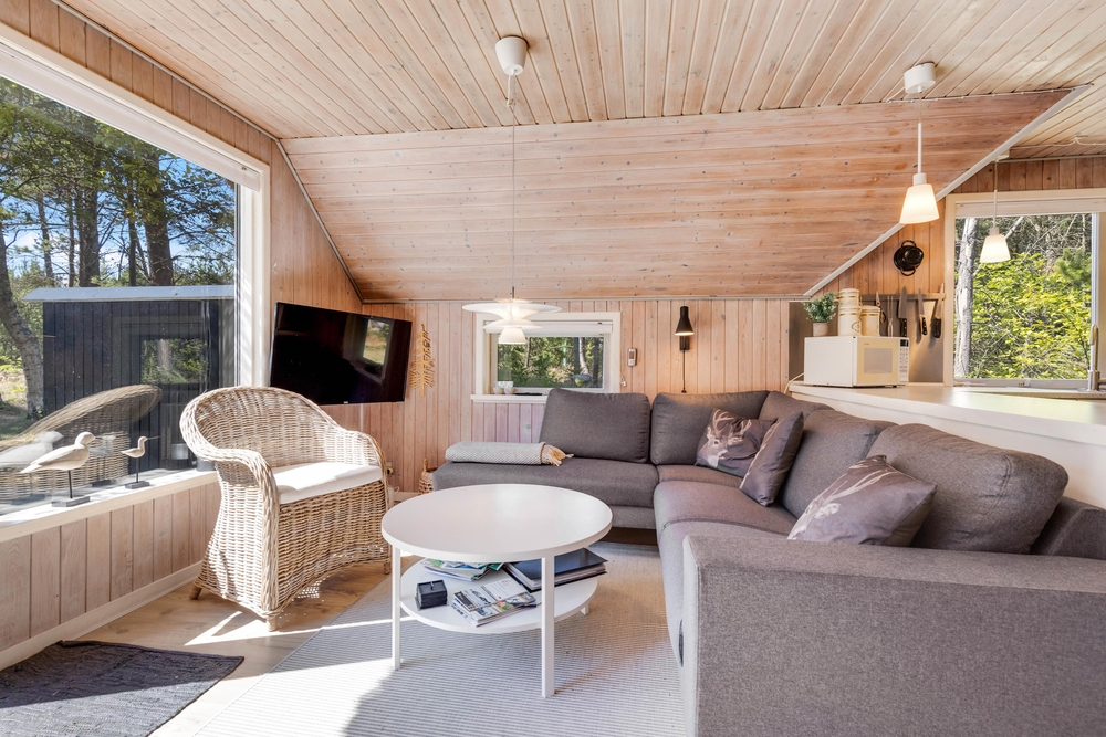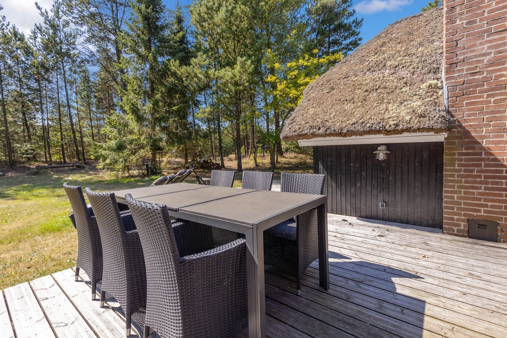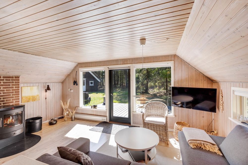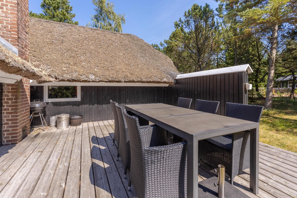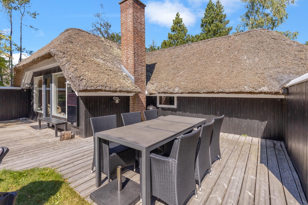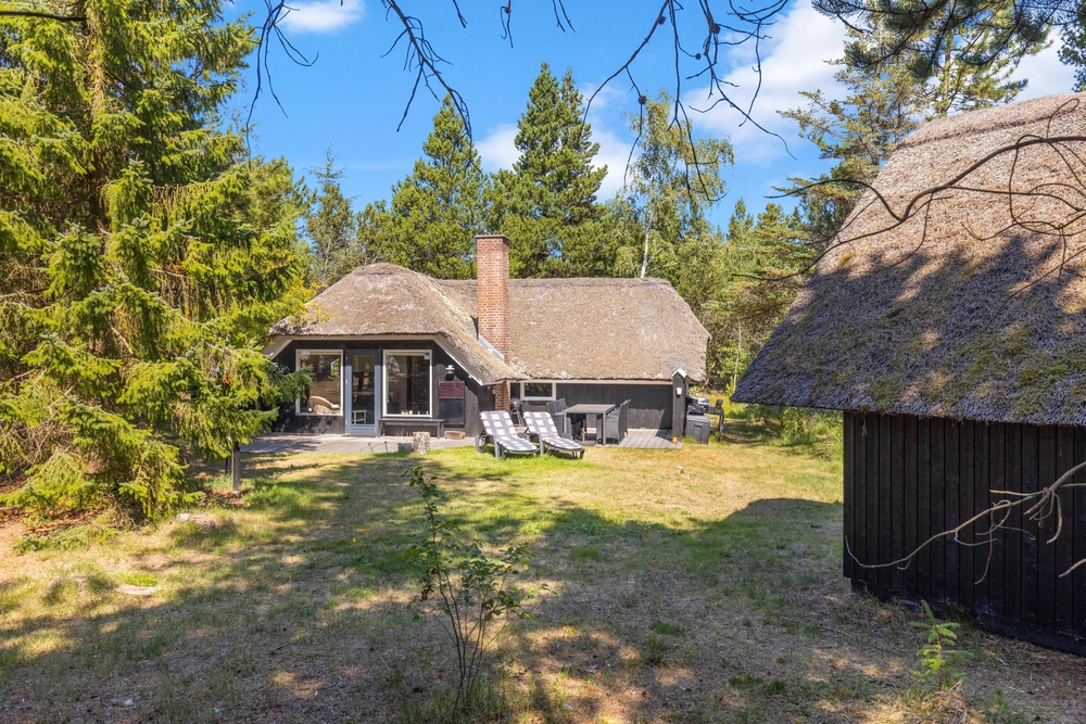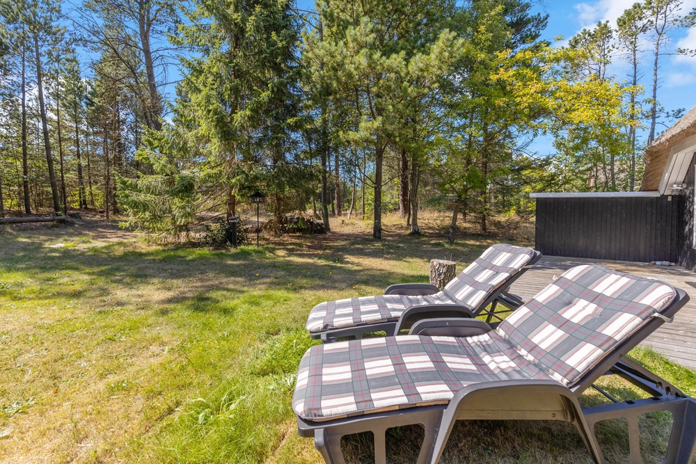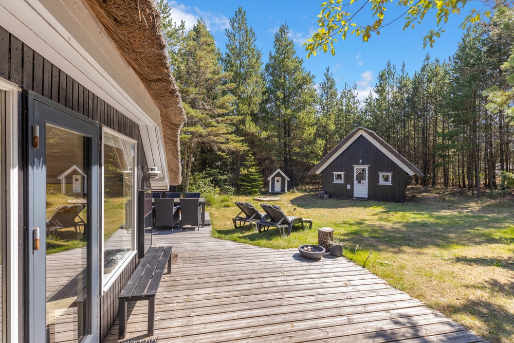 Udearealet omkring sommerhuset er en indbydende forlængelse af jeres opholdssted, der rummer mulighed for både afslapning og aktiviteter. På den rummelige naturgrund på 2075 kvadratmeter kan I nyde den friske luft og de naturskønne omgivelser. Her finder I også en grill, perfekt til at tilberede lækre måltider under åben himmel, mens I nyder skønne sommeraftener.