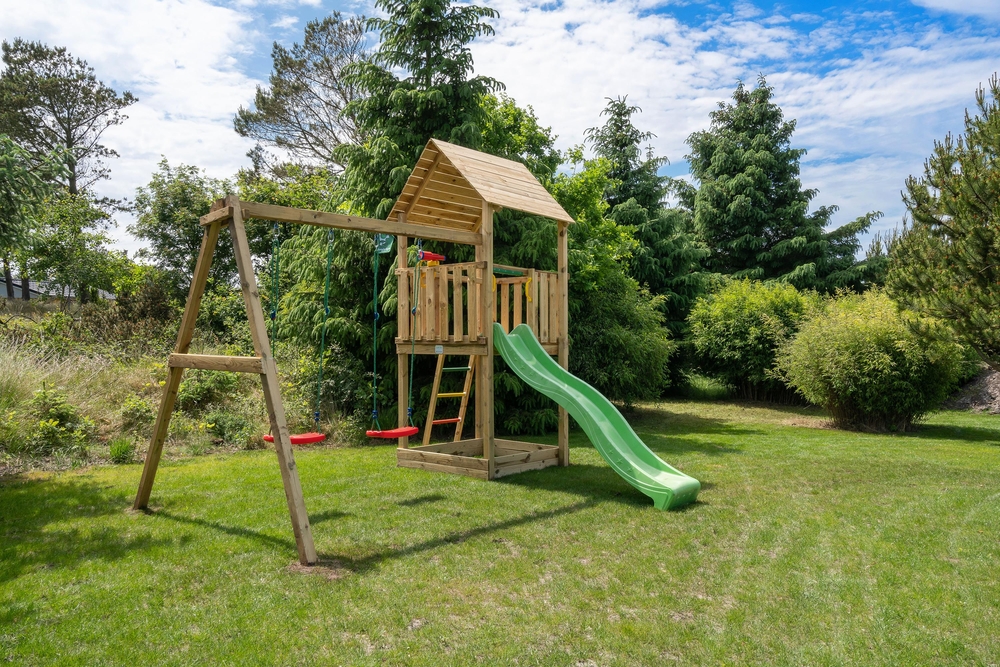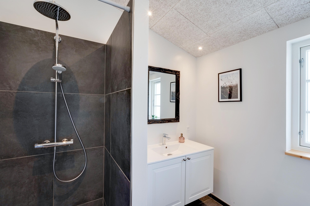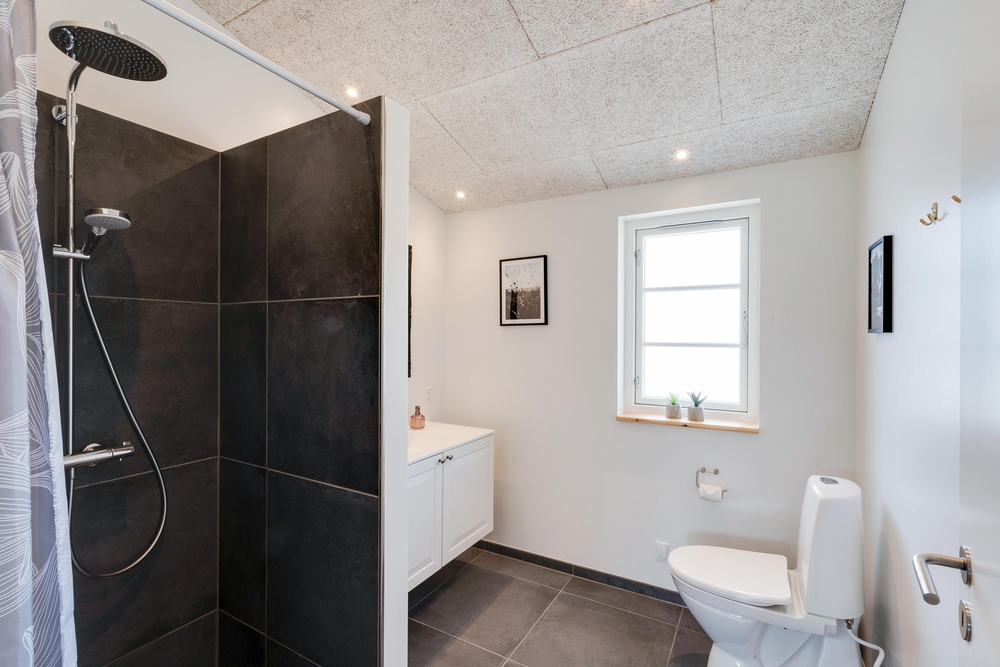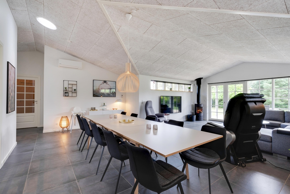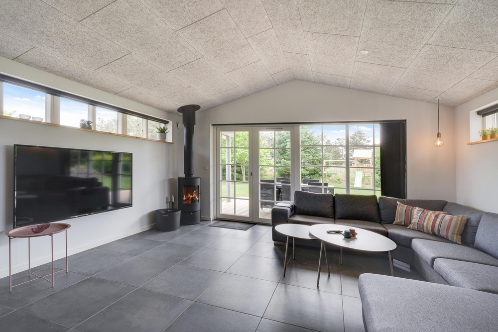 På den store terrasse står der havemøbler klar, så I kan hygge med hele flokken. Imens de mindste leger på feriehusets gynger, og de mellemste er på opdagelse med fiskestængerne ved Strib Sø, kan de voksne slappe af på liggestolene eller måske forberede lidt lækkert til grillen til aftensmaden. Da en del af terrassen er overdækket, behøver I ikke lade vejret diktere, om det er tid til udeliv eller ej.