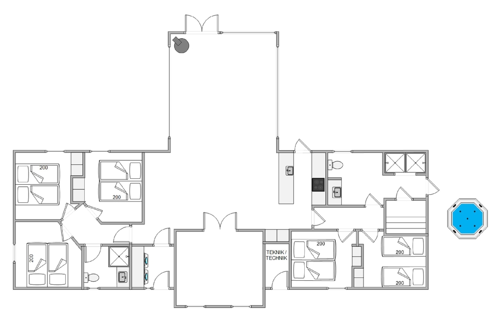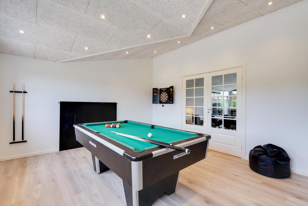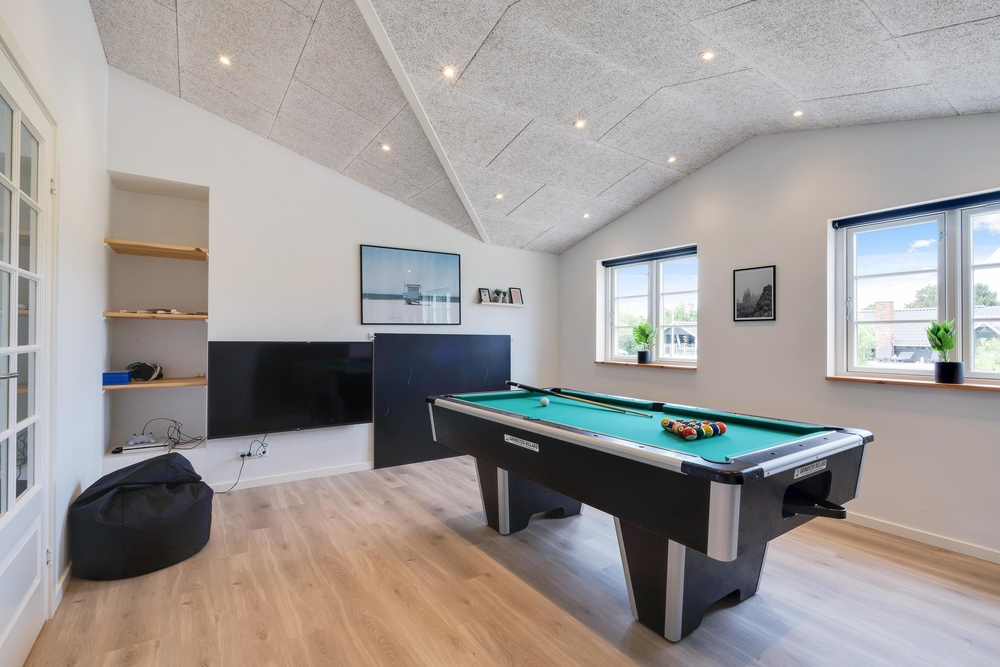 Med mulighed for wellness og sjov er der sørget for underholdning til enhver smag. I aktivitetsrummet kan I give jer i kast med poolbord, bordtennis og dart. Tag en pause i feriehusets ved tænd op i saunaen, der befinder sig i det største af husets 2 badeværelser, der super smart er udstyret med en dobbeltbruser.