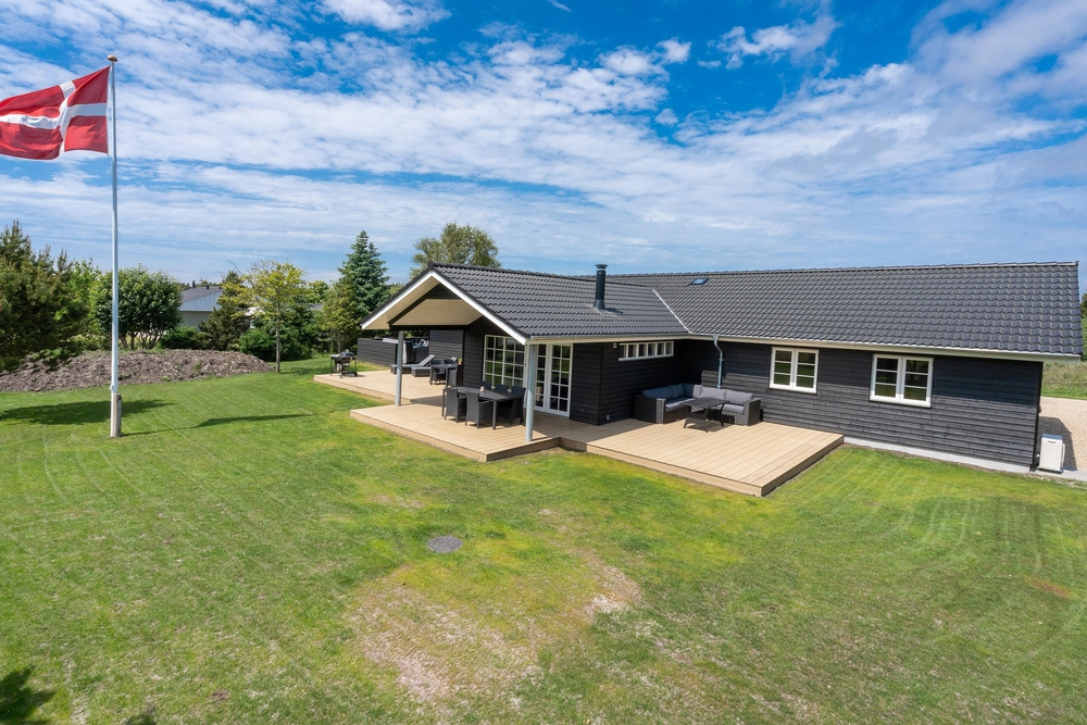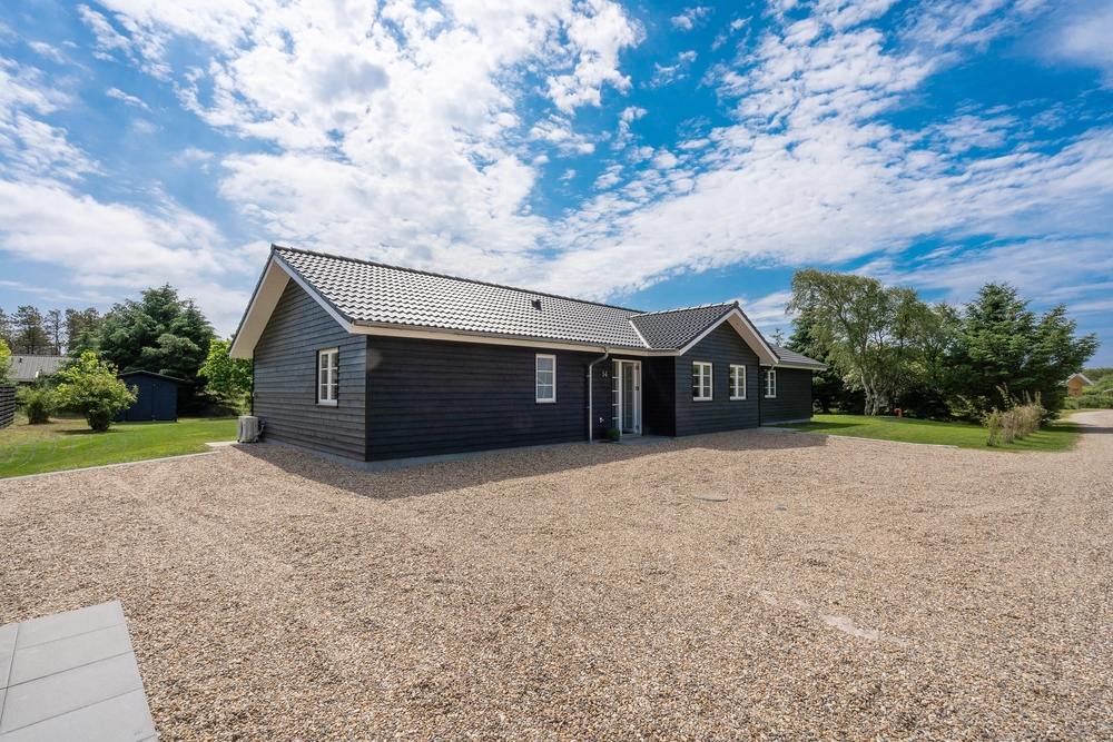 Det flotte feriehus i Vejers Strand er først opført i 2021. Det byder på alt, hvad feriehjertet begærer, med en flot indretning, moderne interiør og afdæmpede farver. I alt står 190 kvadratmeter klar til en afslappende ferie med stor hyggefaktor.
