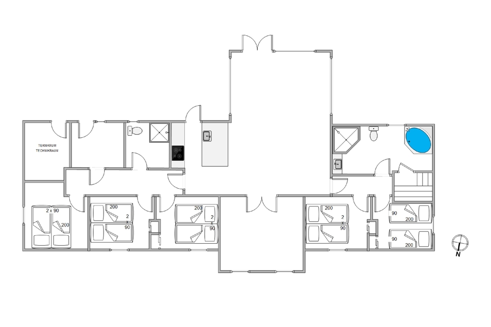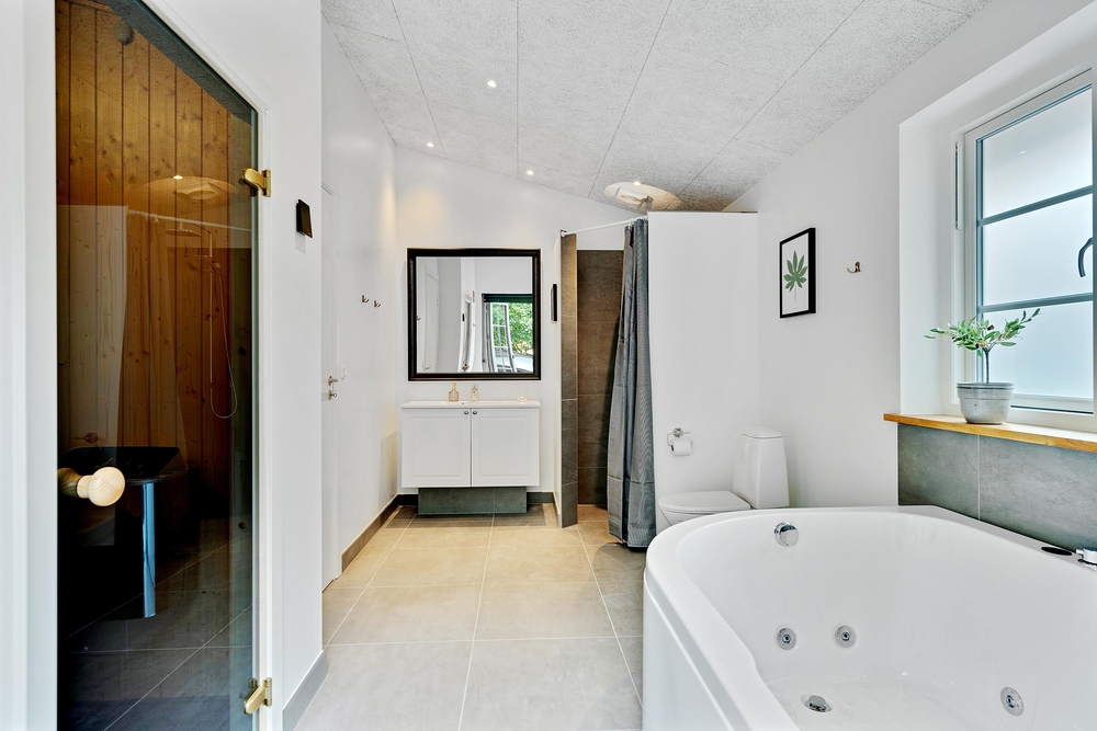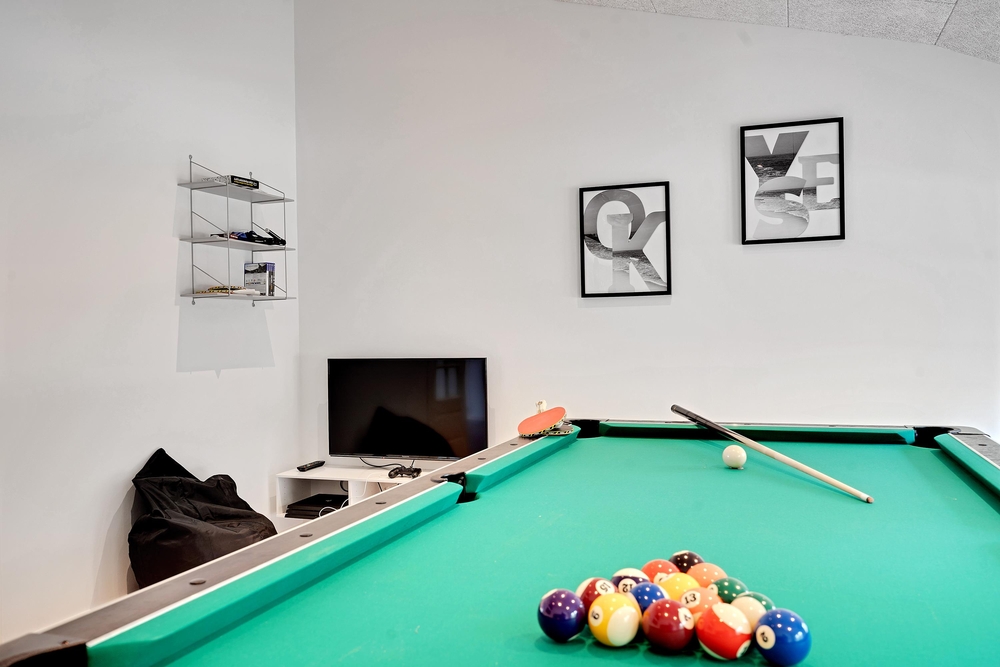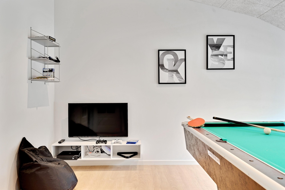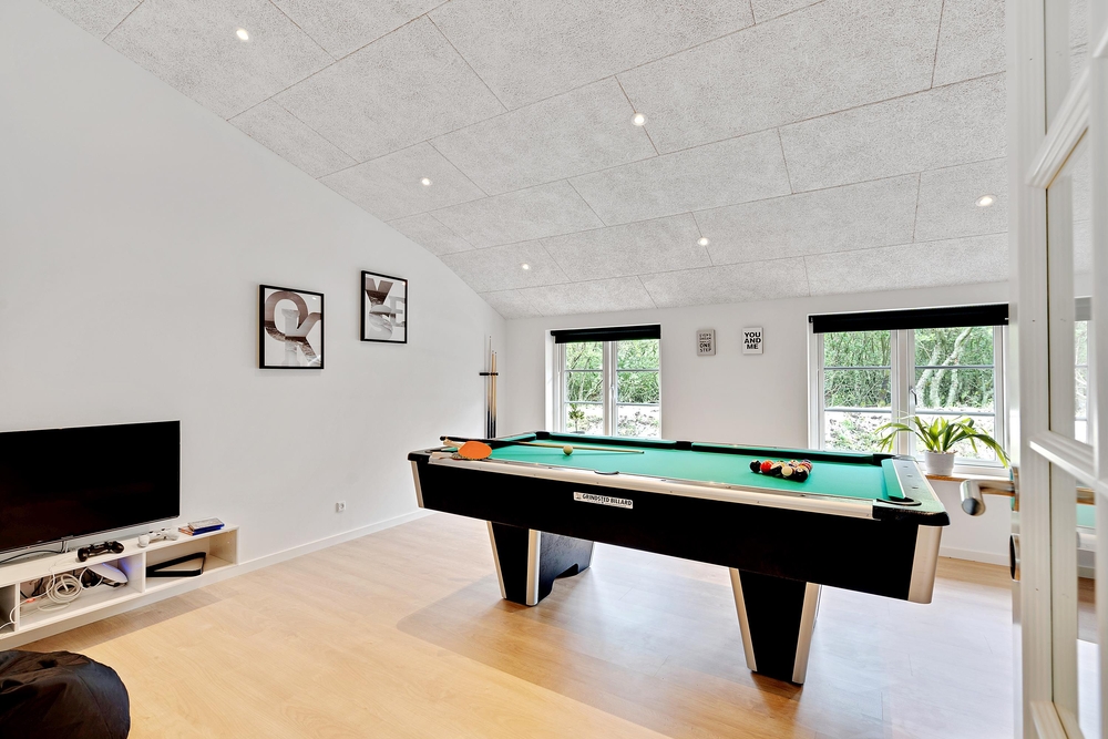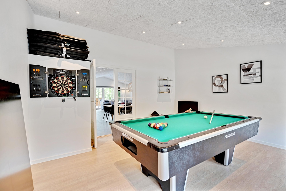 Der er sørget for underholdning til enhver smag. I aktivitetsrummet kan I give jer i kast med poolbord, bordtennis og dart. Det største af husets 2 badeværelser er indrettet med en lækker wellnessafdeling med spabad og sauna, og der er også en massagestol i feriehuset.