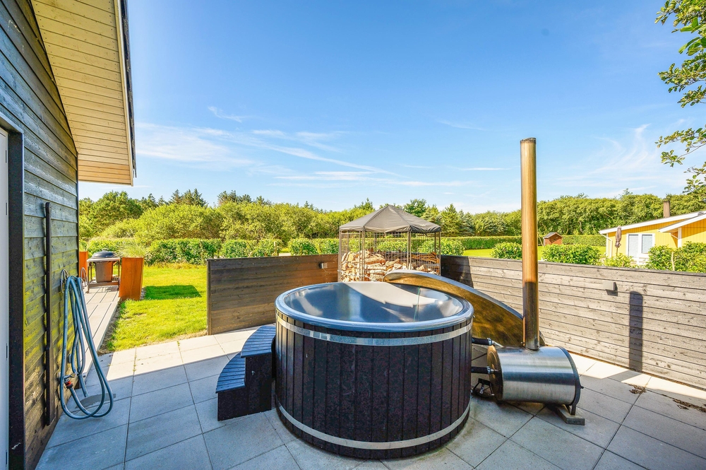 Et ekstra highlight på terrassen er vildmarksbadet. Det varme boblebad kan benyttes hele året rundt, og findes der bedre måder at slutte en perfekt feriedag af på, end med en afslappende jacuzzi-session under stjernehimmelen?