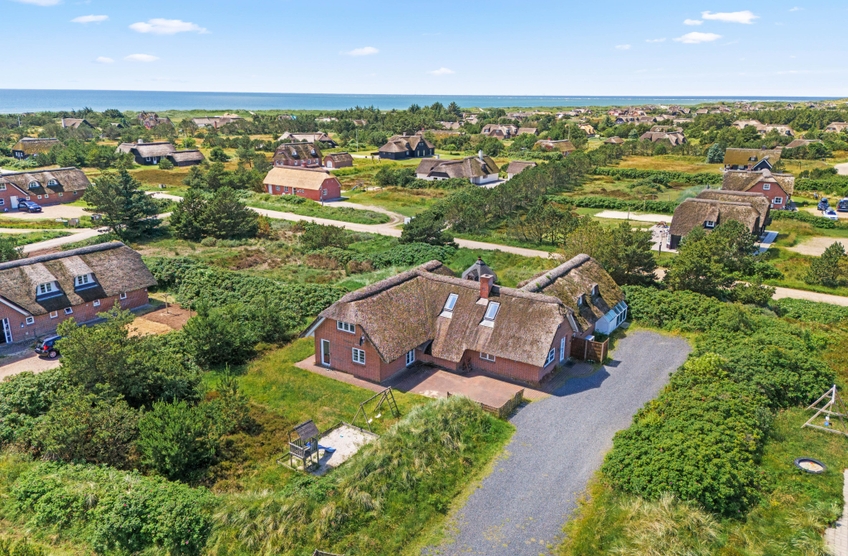 Sommerhuset i Blåvand har meget at byde på både indenfor og udenfor. Den enorme naturgrund på 2865 m² vil børnene få stor glæde af, når de leger på gyngen eller i sandkassen, og på den åbne terrasse kan du sidde og nyde den friske luft sammen med dine nærmeste, måske over lækker mad fra gasgrillen, mens I følger børnenes leg.