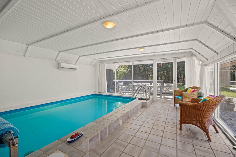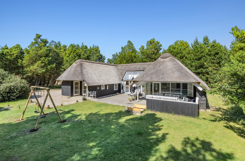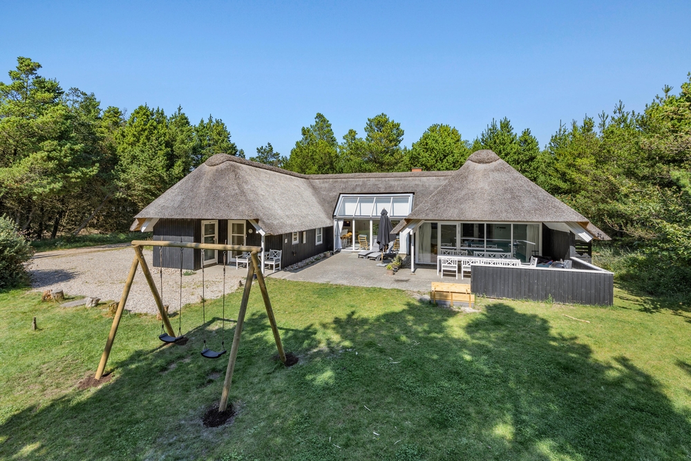 Dette charmerende stråtækte sommerhus på Per Knoldsvej 28C byder velkommen til hyggelige feriedage med afslapning for op til 8 personer og 1 hund. Her kan I nyde hinandens selskab rundt om spisebordet, i den hyggelige stue eller i den 14 m2 store pool. Det er ikke kun de menneskelige batterier, der bliver ladet op her, for huset har også en ladeboks til jeres elbil (husk ladekabel/adapter type 2).