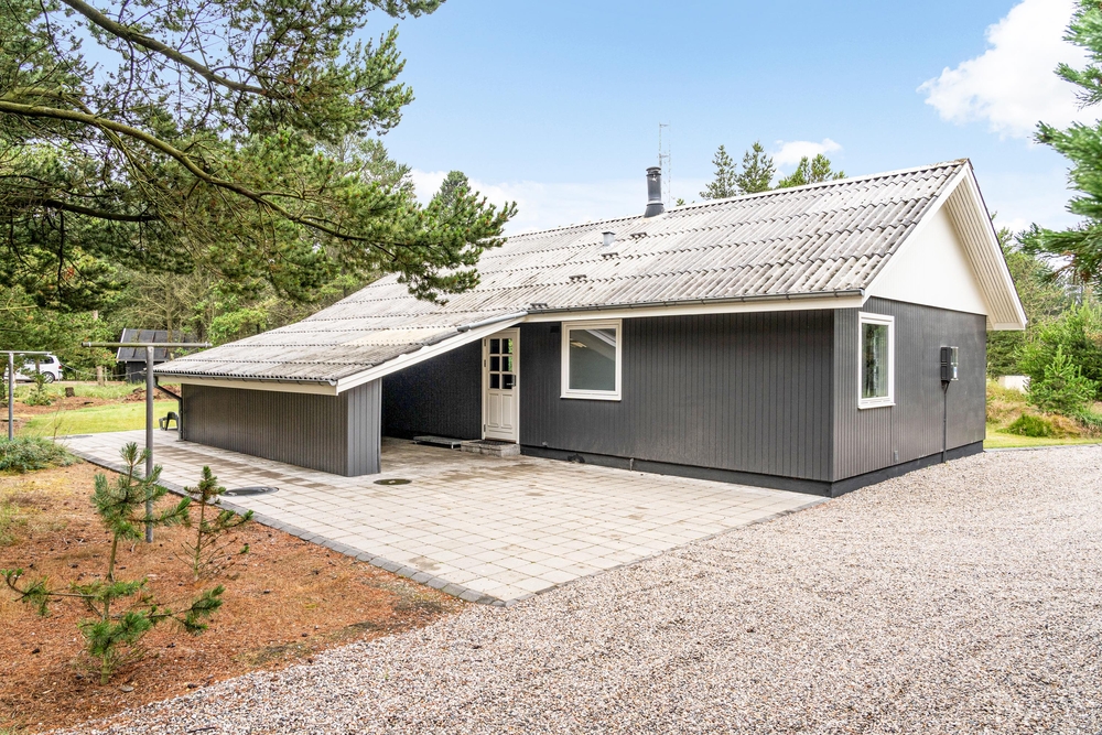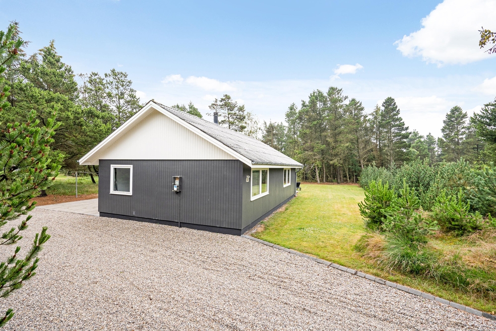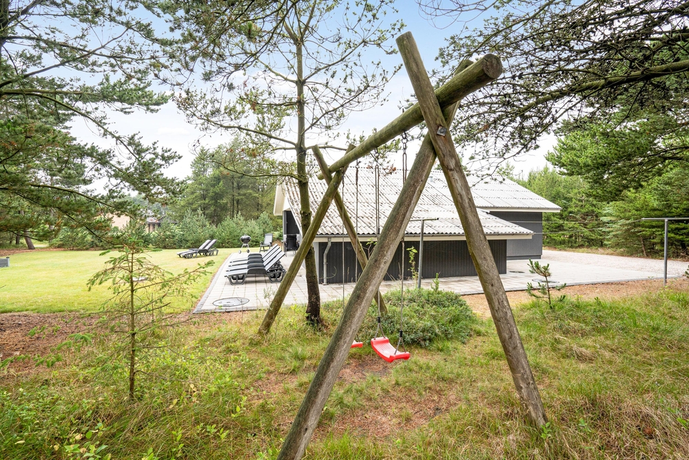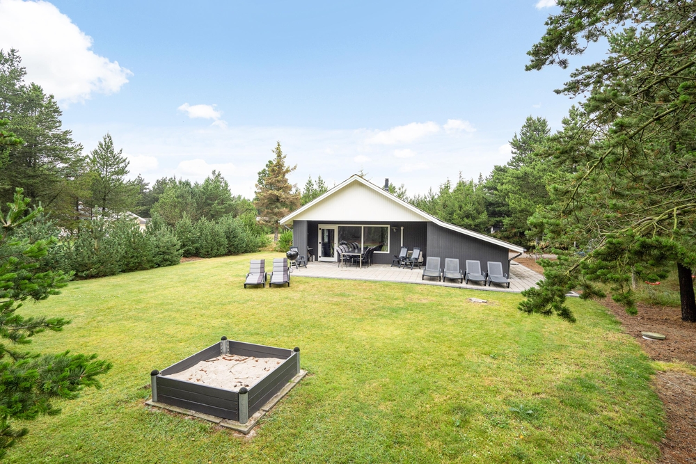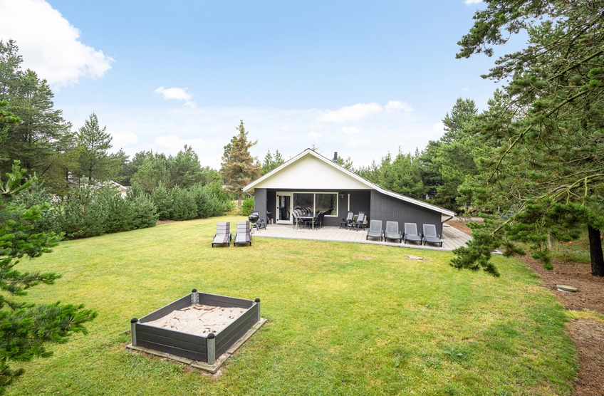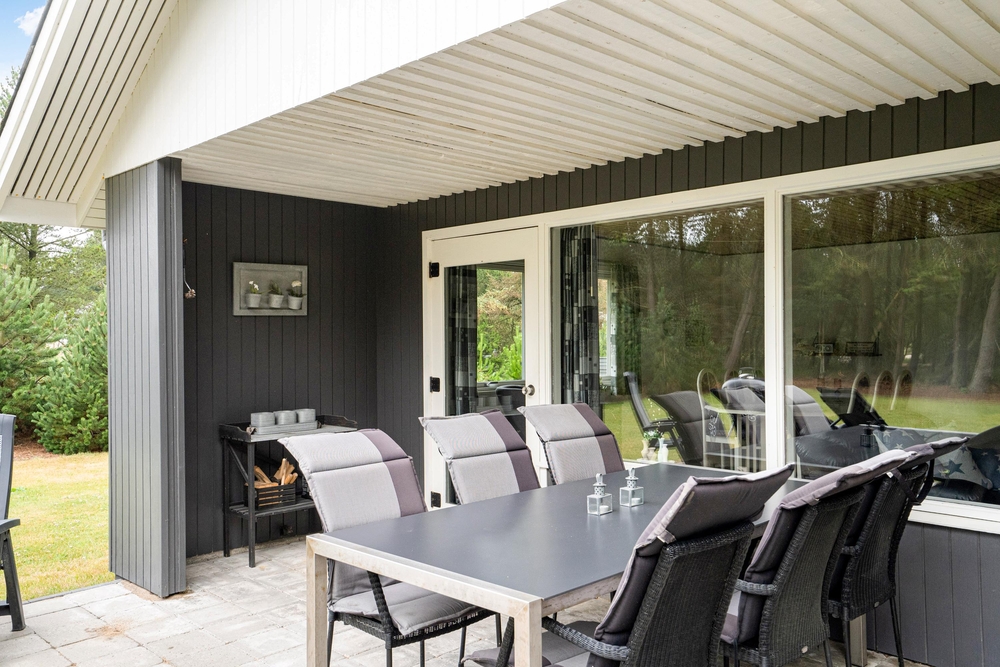 En stor terrasse går næsten hele vejen rundt om huset, og her er der masser af plads til at solbade og nyde feriefreden. Der er havemøbler og liggestole nok til alle, og på de lune aftener kan I tænde op i grillen.