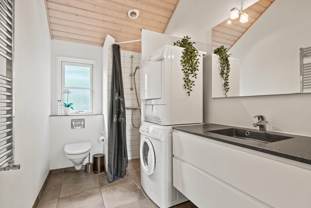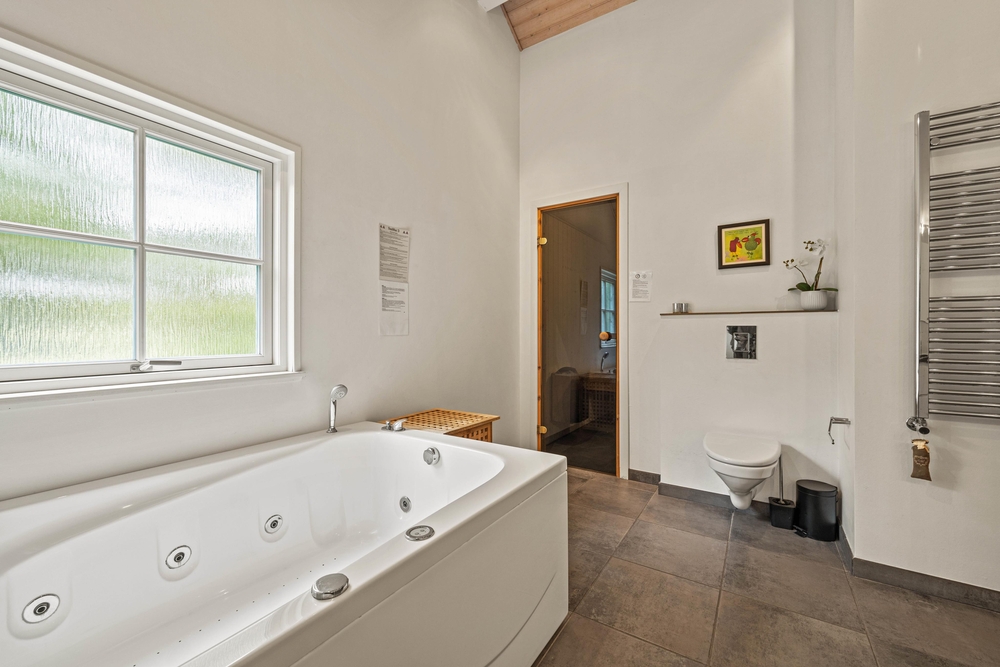 Spa og sauna kan I også nyde godt af! Begge er at finde på det ene af sommerhusets 2 badeværelser, begge med behagelig gulvvarme. Der forefindes både vaskemaskine og tørretumbler i sommerhuset ? så tag jeres badetøj og håndklæder og læg det i vaskemaskinen, så det er dejligt nemt at pakke strandtasken næste morgen.