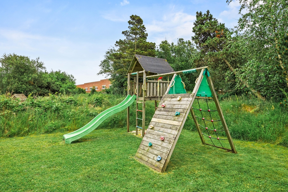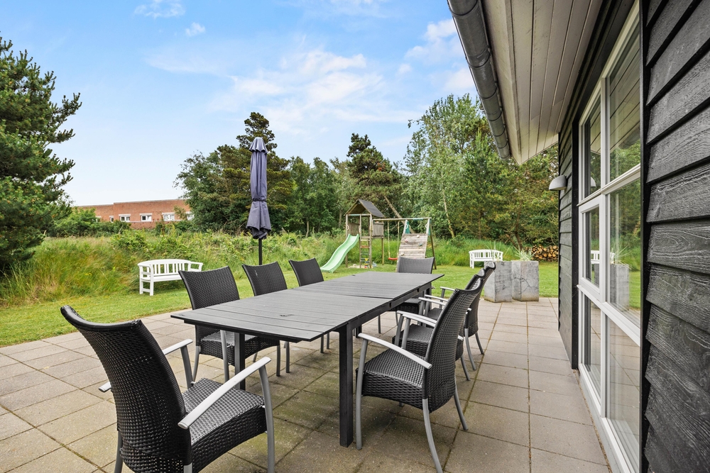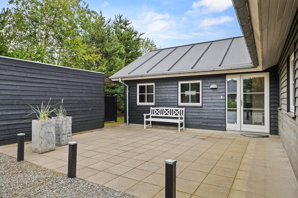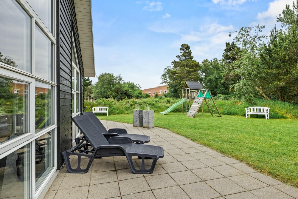 Den 1500m2 store plænegrund er fuld af muligheder for både store og små. Rundt om sommerhuset er en skøn terrasse, hvor I kan nyde solens stråler, uanset om I foretrækker at hygge jer i havemøblerne, eller dase på solvognene. Børnene kan samtidig give den fuld gas på gyngerne, i sandkassen eller lege i legehuset. Den store græsplæne er selvfølgelig også perfekt til boldspil og kongespil. Efter en skøn feriedag, kan I tænde op i grillen og nyde et lækkert feriemåltid under åben himmel.