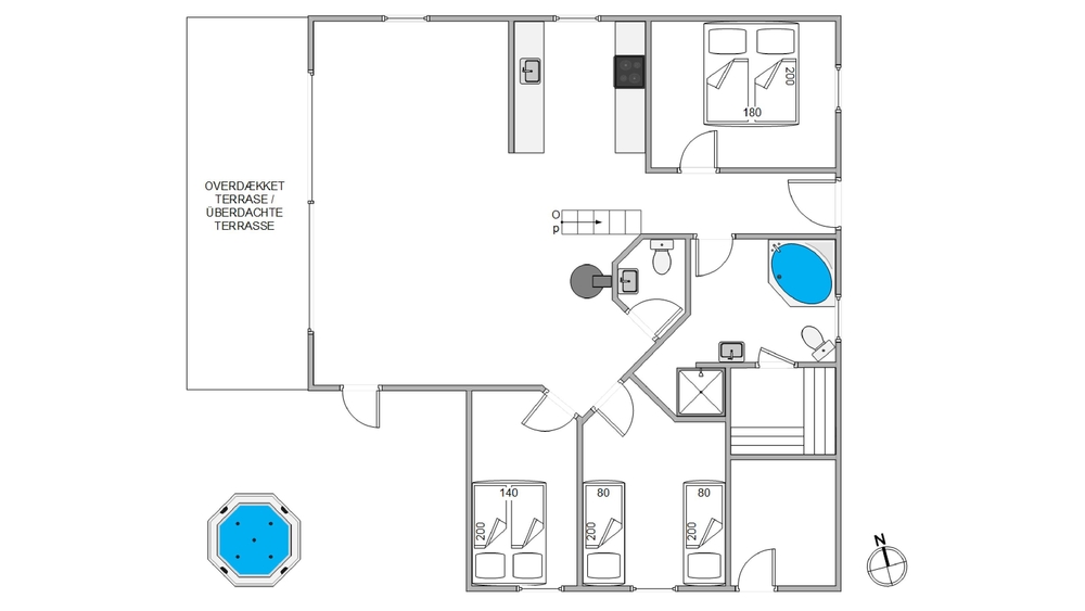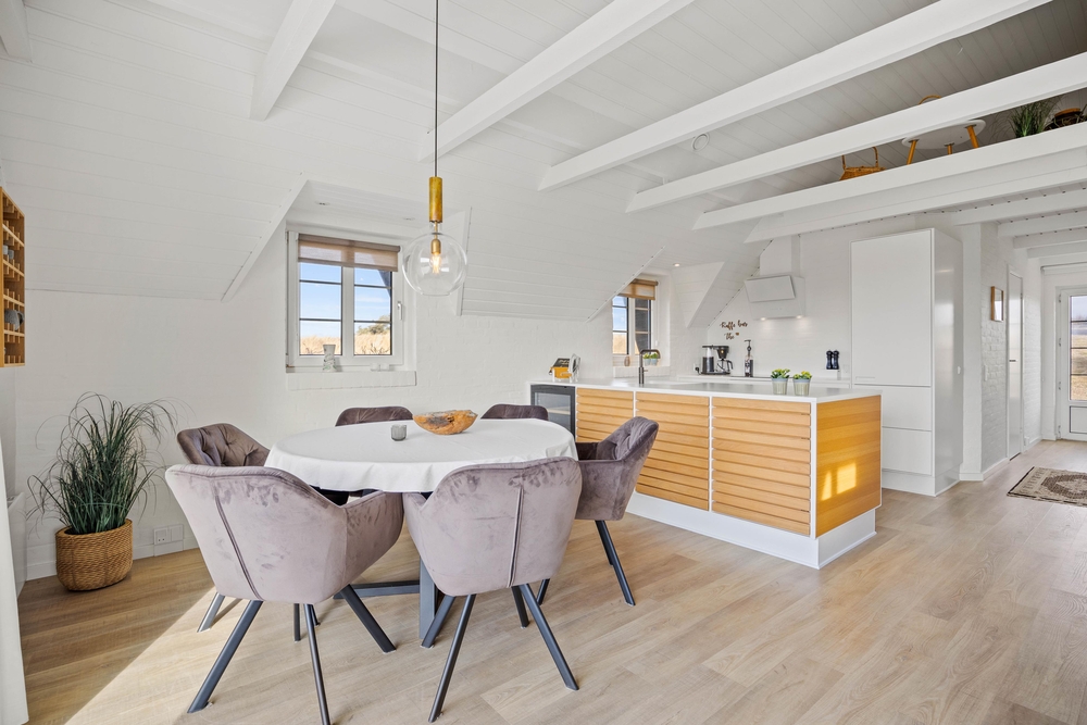 Hjertet i feriehuset på Plantagevej 46 er det skønne og åbne alrum, hvor I rigtig har mulighed for at samle ferieflokken og være sammen. Imens nogen står for aftensmaden, har andre mulighed for at slænge sig i sofaen, nyde varmen fra den knitrende brændeovn, tage et spil m.m. Derudover har I mulighed for at tage en drink, imens I nyder de varme bobler fra den skønne udespa, samtidig med I oplever solen gå ned over klitterne. Alternativt kan I tage en god lang spadseretur ved vandet eller en dukkert, hvor I afslutningsvis igen kan få varmen i feriehusets sauna.