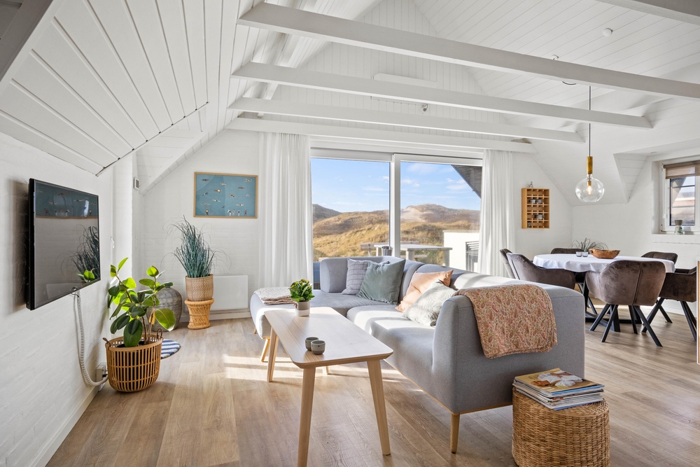 Feriehuset emmer af skøn sommerhusstemning fra første øjeblik, I træder ind i feriehuset. Her bliver I mødt af den skønne panoramaudsigt ud over klitterne og indgangen til det åbne opholdsrum med stue, køkken og spiseplads i ét. I sommerhuset på Plantagevej 46 har I mulighed for at nyde ægte afslapning både i sauna, udespa eller indendørs spa.