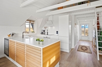 I alrummet er der et skønt lysindfald, der komplimenterer den lyse og moderne indretning i sommerhuset samtidig med, at vinduespartiet giver jer en skøn panoramaudsigt til den vilde og smukke omkringliggende natur. Efter en dejlig dag, kan I søge mod de 3 soveværelser. Det ene soveværelse er udstyret med 2 enkeltsenge, og de sidste to soveværelser råder begge over en dobbeltseng. Her vil I kunne få en god nats søvn med mulighed for at få ladet batterierne op til endnu en dejlig dag.