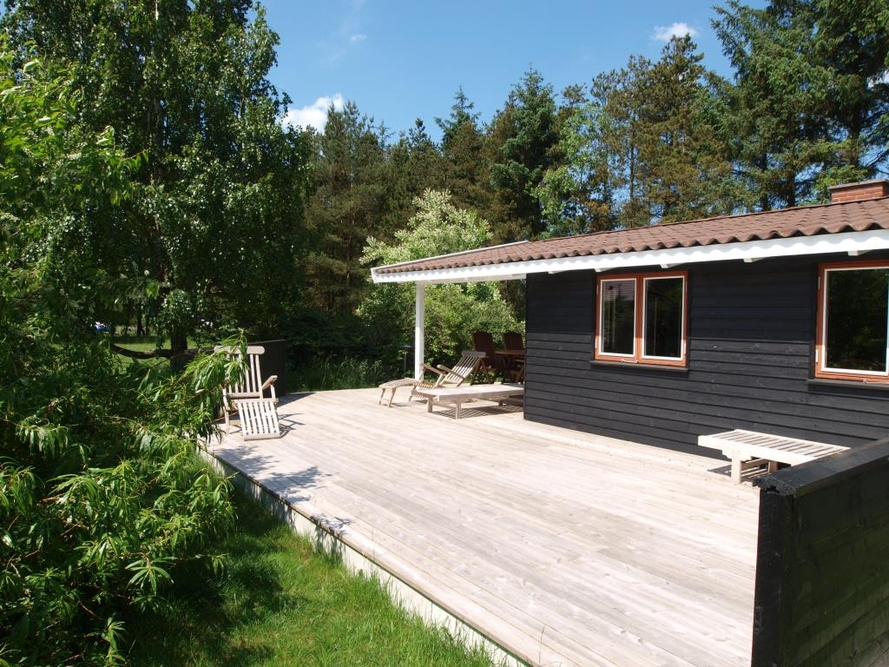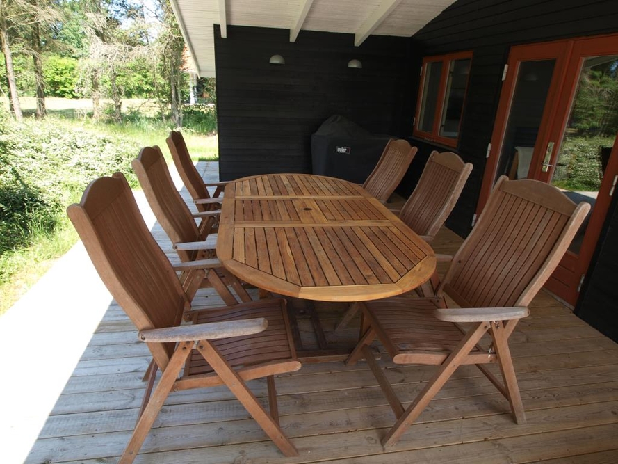 Fra stuen kommer I ud på den delvist overdækkede terrasse, som er udstyret med gode havemøbler. Her kan I spise en lækker morgenmad i solen og lytte til fuglenes kvidren i træerne på de varme dage. Den store græsplæne byder også på god plads til leg og boldspil for de små feriegæster, mens I ser til fra liggestolene og nyder den friske luft.
