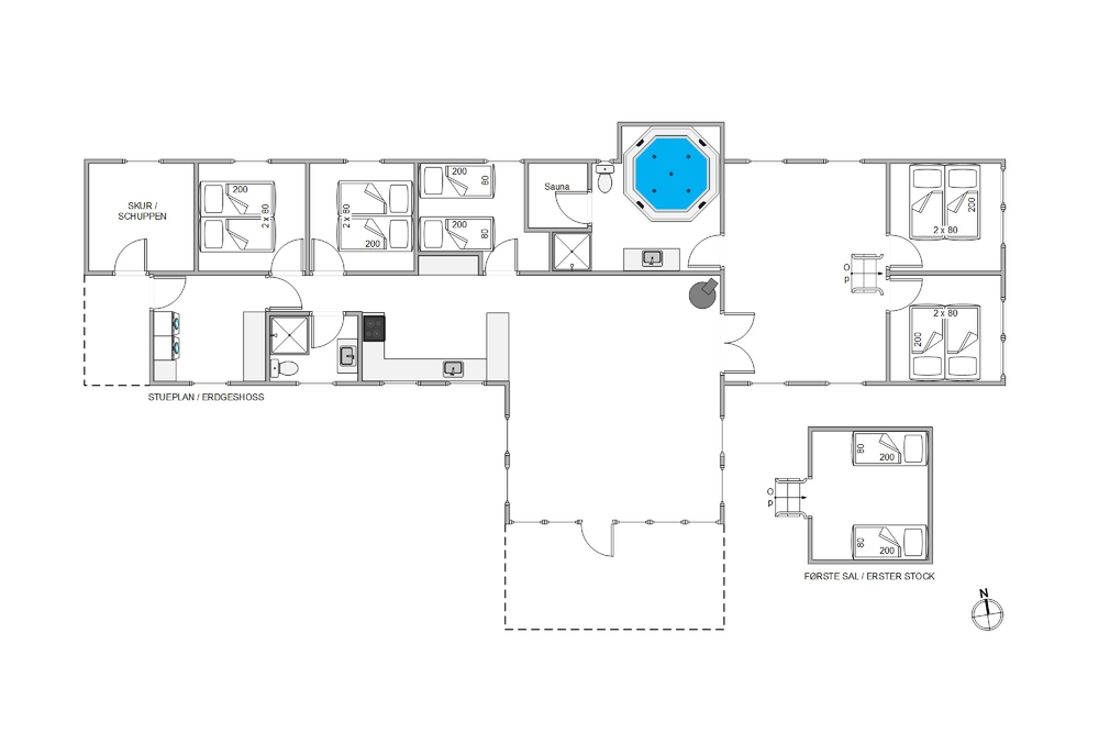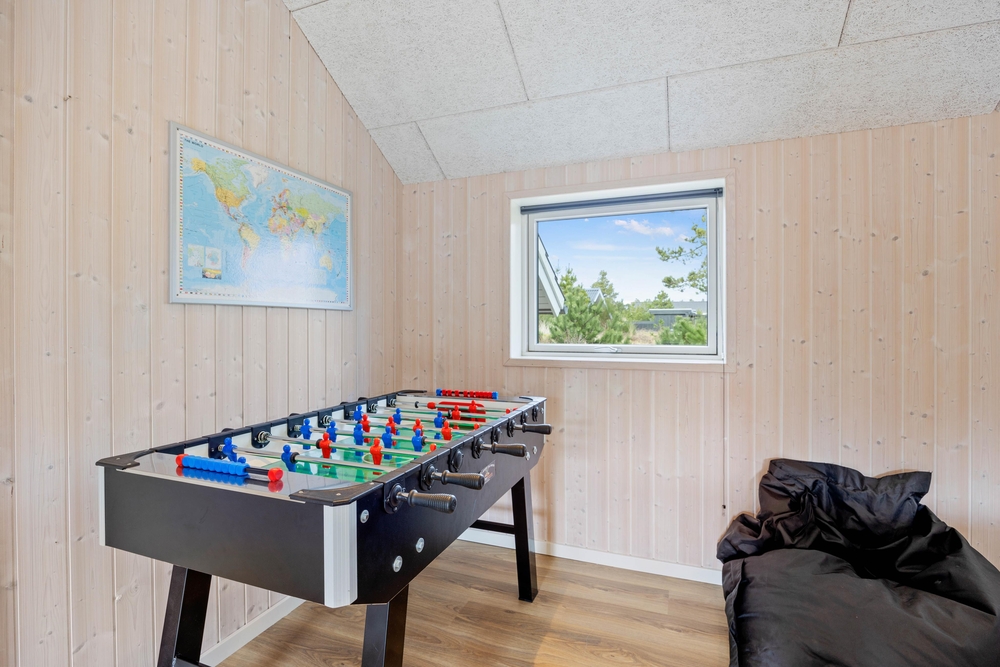 Endnu et højdepunkt i feriehuset er aktivitetsrummet, hvor I både kan spille billard, bordtennis og bordfodbold, og I vil helt sikkert tilbringe mange sjover timer sammen her. Også alrummet kommer til at danne rammen om mange hyggelige stunder med madlavning, spil og film til lyden af brændeovnens knitren i baggrunden.
