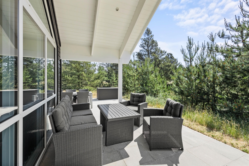 Feriens yngste gæster vil uden tvivl elske at lege i den store have, hvor der også er både en sandkasse og en gynge til dem. Mens de leger i haven, kan I andre finde jer en god plads på terrassen, hvor I kan læne jer tilbage i havemøbler og liggestole. Terrassen er delvist overdækket, og I har derfor både mulighed for at sidde i sol og skygge.