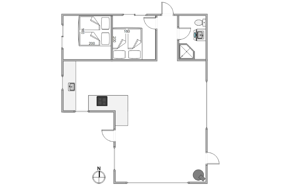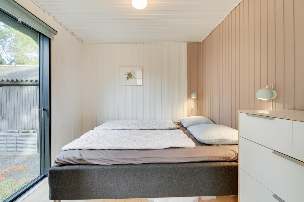 Det 65 kvadratmeter store sommerhus er indrettet med 2 gode soveværelser, der begge er indrettet med dobbeltsenge. Desuden er sommerhuset indrettet med 1 badeværelse, der har gulvvarme, så I ikke fryser fødderne om morgenen.