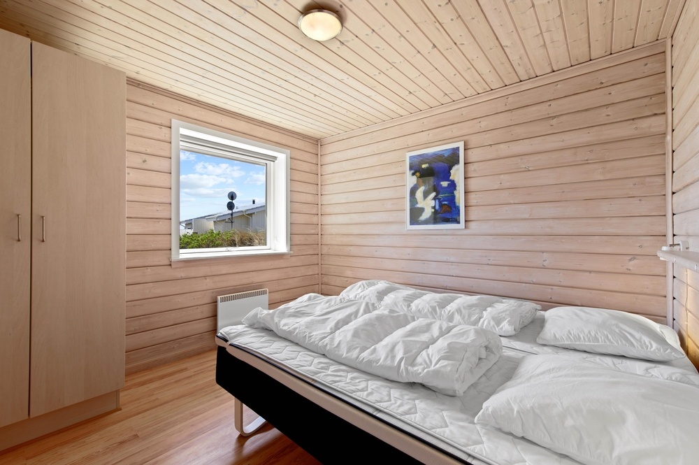 De 3 soveværelser har alle gode boksmadrasser og skabsplads. Her er 2 soveværelser med dobbeltsenge og 1 soveværelse med 2 enkeltsenge.