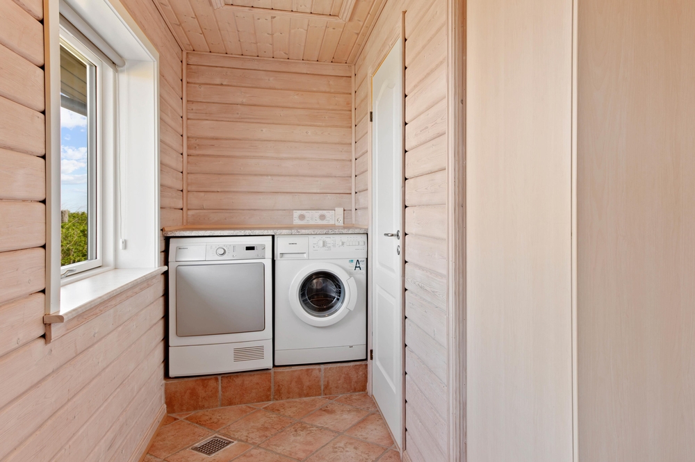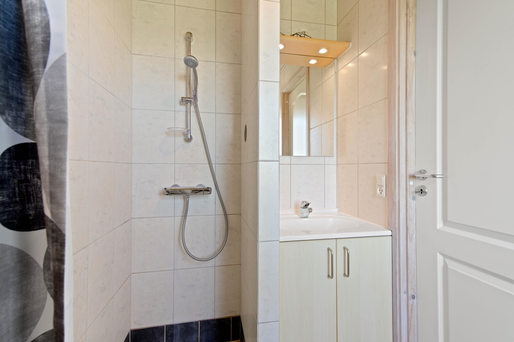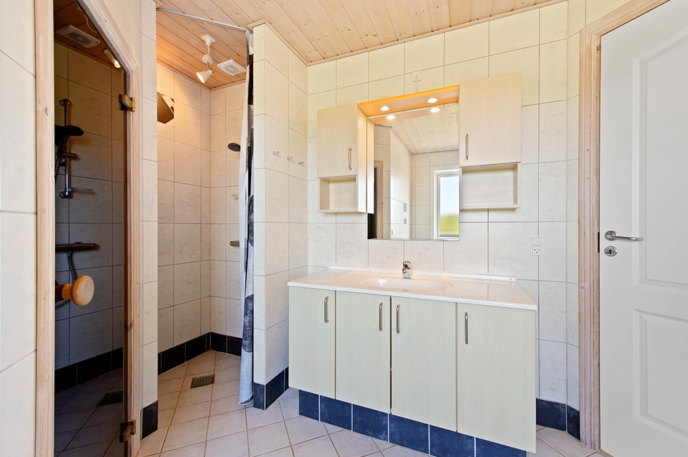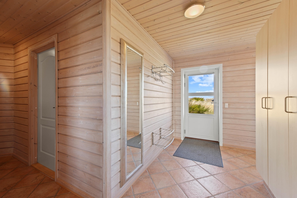 Rummeligt og særdeles velholdt byder sommerhuset dig velkommen. Der er en pæn indgang med garderobe og vaskesøjle samt indgang til lille gæstetoilet med bruseniche. Det store, flotte badeværelse er indrettet med spabad, bruser, gulvvarme og har indgang til sauna. Her kan I rigtig slappe af i løbet af ferien efter gode gåture i det naturskønne område.