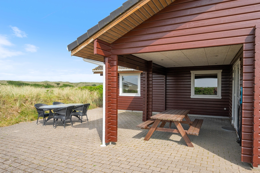 Sommerhuset ligger kun et par hundrede meter fra vandkanten og i gå afstand fra købmanden. Her er en flot, åben og delvist overdækket terrasse med havemøbler, liggestole og grill. På en lun sommeraften er det opskriften på hyggelige stunder udendørs med hele familien.
