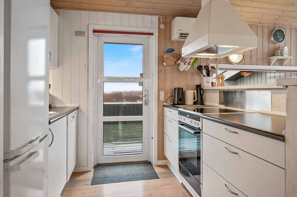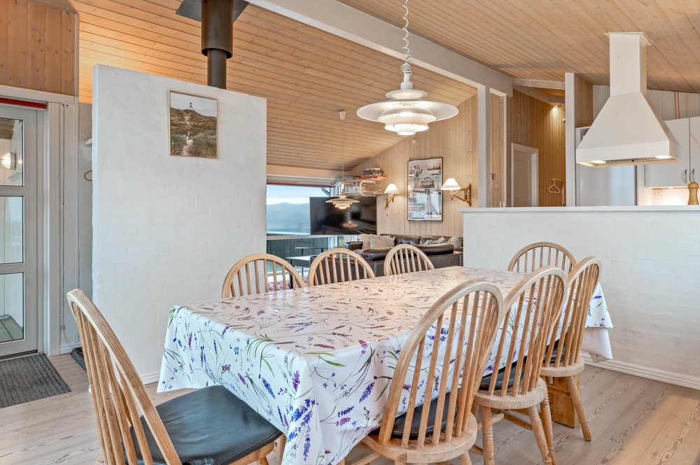 Her kan I nyde jeres velfortjente ferie i et virkelig velholdt, velisoleret og indbydende indrettet feriehus med alle faciliteter til den vellykkede ferie på vestkysten i Danmark. Sommerhuset har et lyst og veludstyret køkken, hvorfra der er forbindelse til både spiseafdeling og opholdsafdeling med elegant og gedigen møblering.