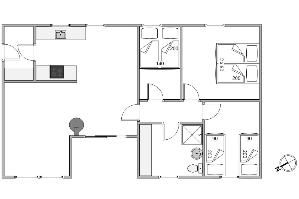 Huset er indrettet til 6 personer og er perfekt til familien ? køjeværelset vil falde i god jord ved de mindste feriegæster, og også det sidste familiemedlem, hunden, kan komme med.