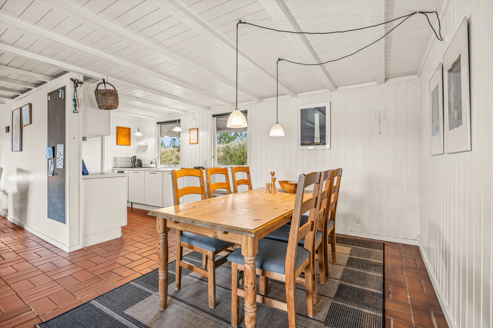 Den klassiske sommerhusstil kombineret med flere små detaljer tilfører huset ægte charme, og her er rammerne sat for en helt enkel og afslappende feire med masser af tid til samvær. Især i det åbne opholdsrum med stue, spiseafdeling og integreret køkken er der lagt op til familietid, og her kan I samles om madlavningen, spille kort rundt om bordet eller slappe af på sofaen med en god film efter en dag i det fri.