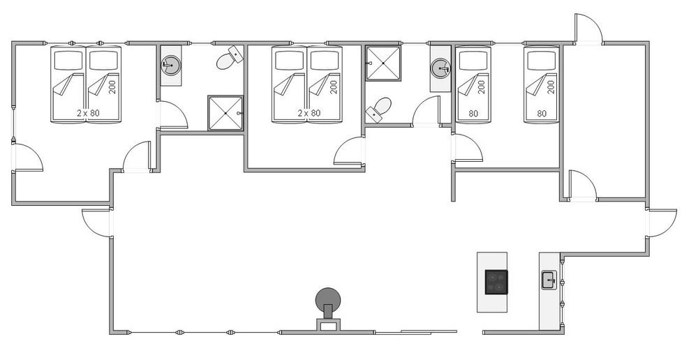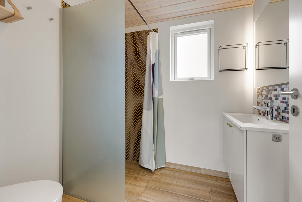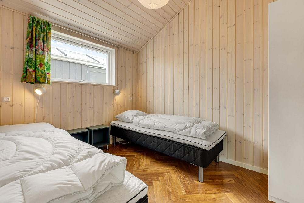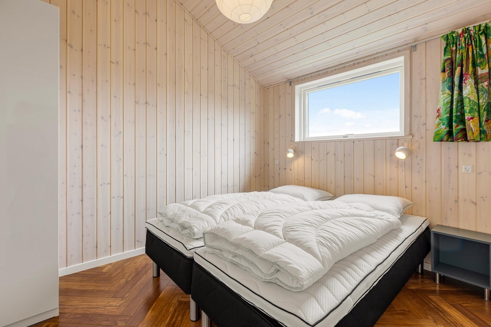 Sommerhuset har hele 2 badeværelser, som begge er med gulvvarme, så I ikke kommer til at fryse fødderne. Når sengen kalder, kan I fordele jer på de 3 gode værelser, hvoraf der er 2 dobbeltsenge. På det sidste værelse finder I 2 enkeltsenge til en god nats søvn.
