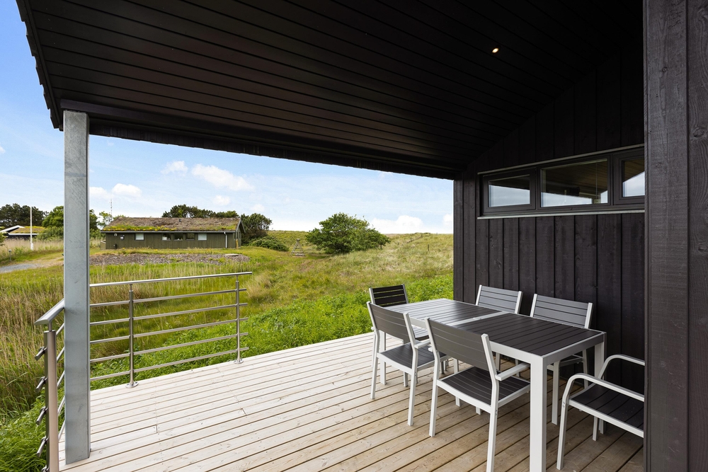 Fra stuen har I direkte udgang til terrassen, som er delvist overdækket. Her kan I nyde udsigten over landskabet, mens I spiser et lækkert aftensmåltid, som er tilberedt på gasgrillen.
