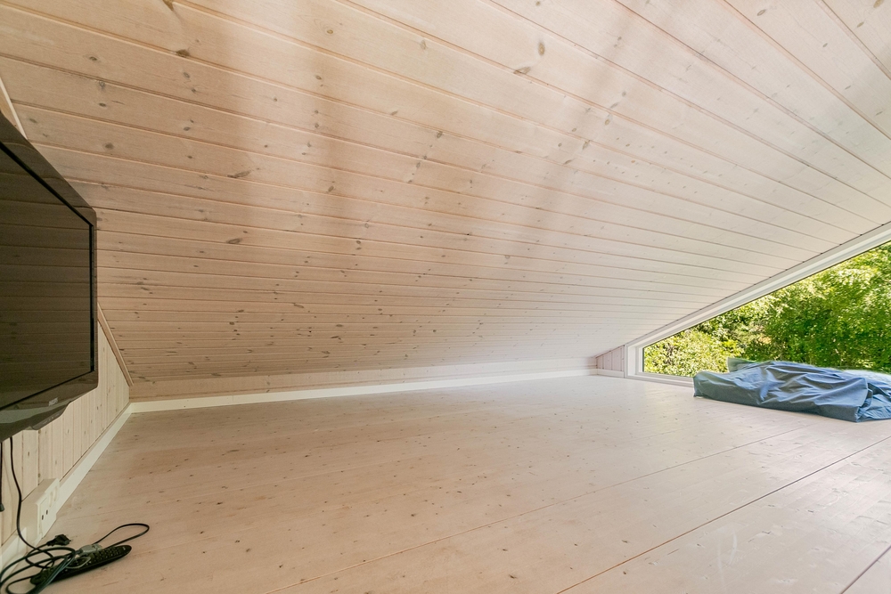 Feriehuset har en rigtig dejlig og lys indretning, så alt fremstår indbydende som muligt. Der er skabt en hyggelige sofaafdeling, hvor I kan slappe af eller se noget TV eller. Oppe på hemsen er der et ekstra fjernsyn, så børnene kan underholde sig med medbragte spillekonsoller og dvd-afspiller.