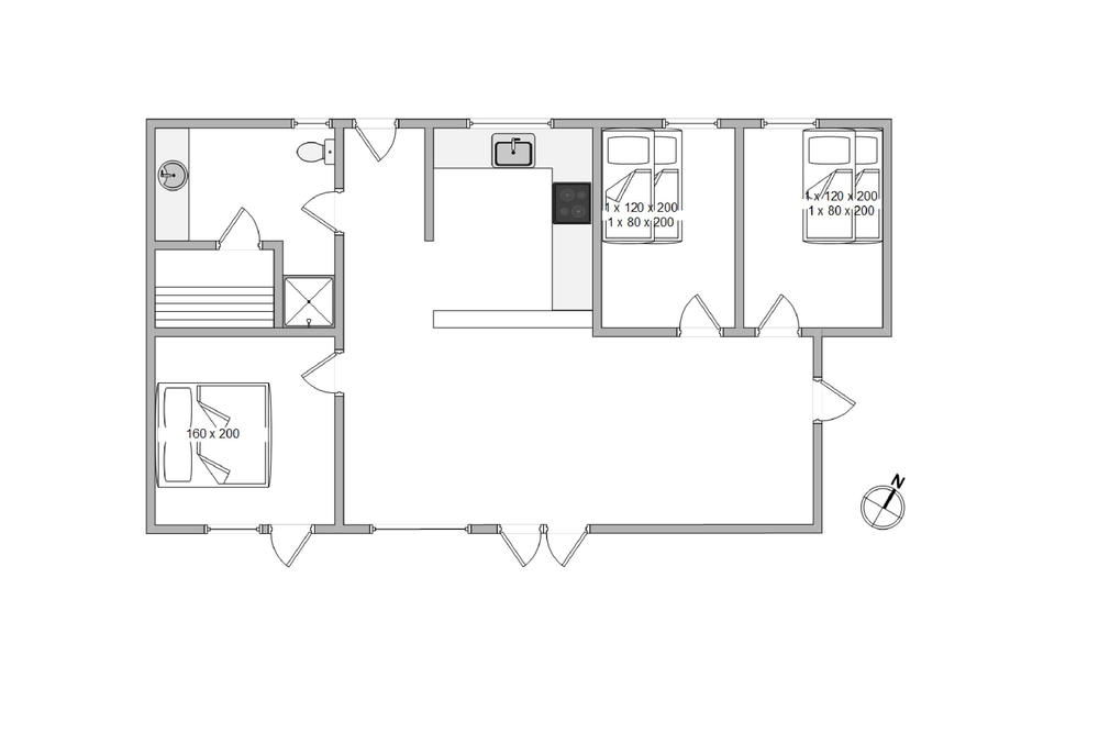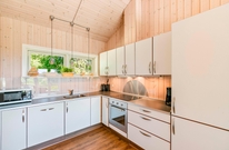 Det åbne køkken og den hyggelige stue med spiseafdeling indbyder til sammenvær med familien. Det veludstyrede køkken i sommerhuset gør madlavningen til en sand fornøjelse. Her finder I en opvaskemaskine, der sikrer hurtig og nem rengøring, samt en praktisk 50 L separat fryser, der giver jer rigelig med plads til at opbevare alle jeres madvarer. Hvis I ønsker at nyde en ægte dansk grillmiddag, er der grill til rådighed sammen med komfortable havemøbler på den åbne terrasse. Perfekt til lune sommeraftener omgivet af natur.