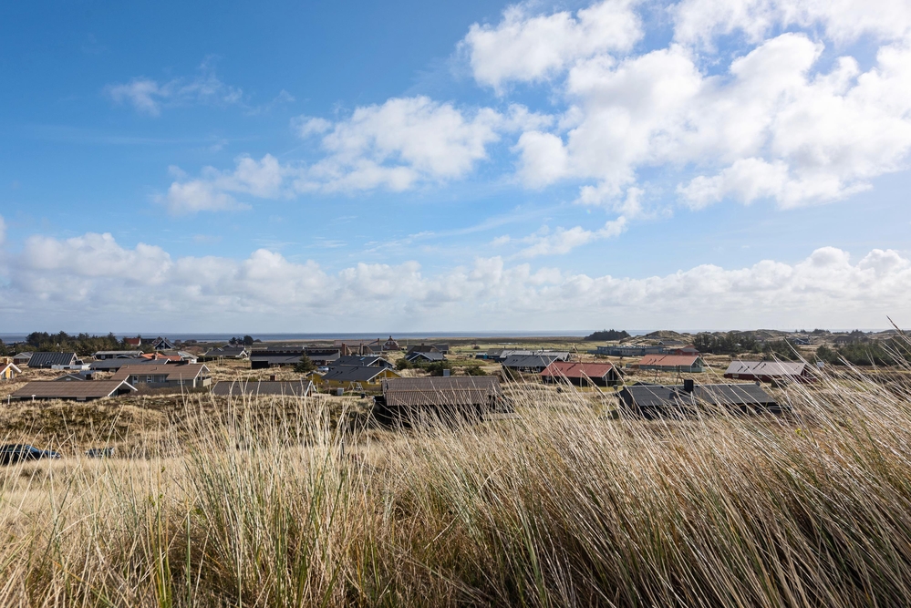 Poolhuset på Riskrogvej 6 er højt beliggende, hvilket giver en ualmindelig flot udsigt ud over klitområdet og Ringkøbing Fjord.