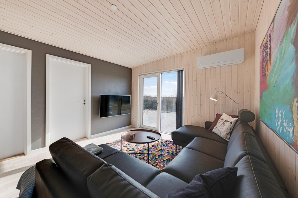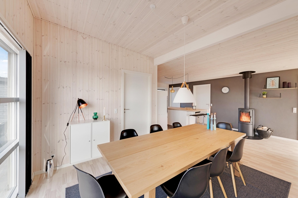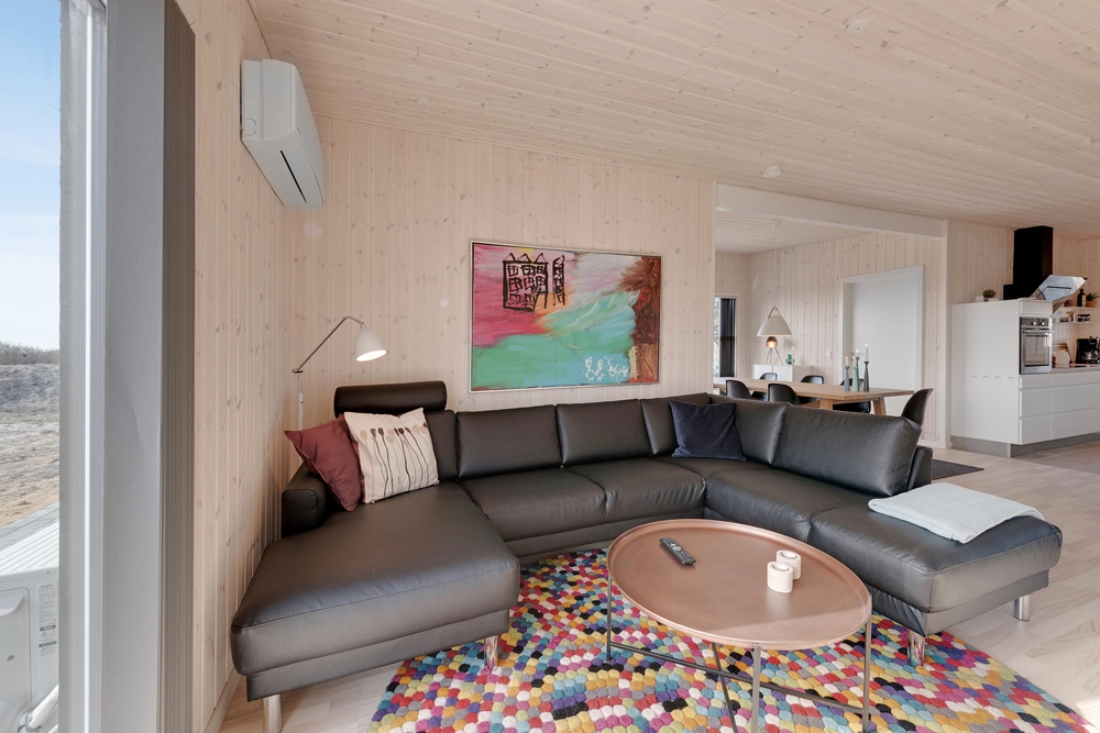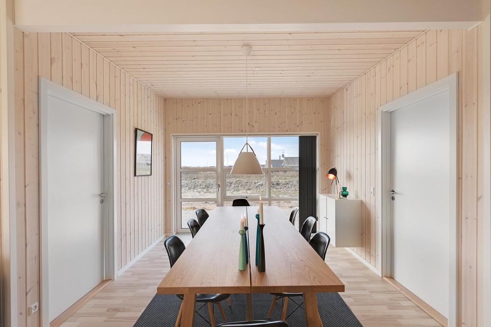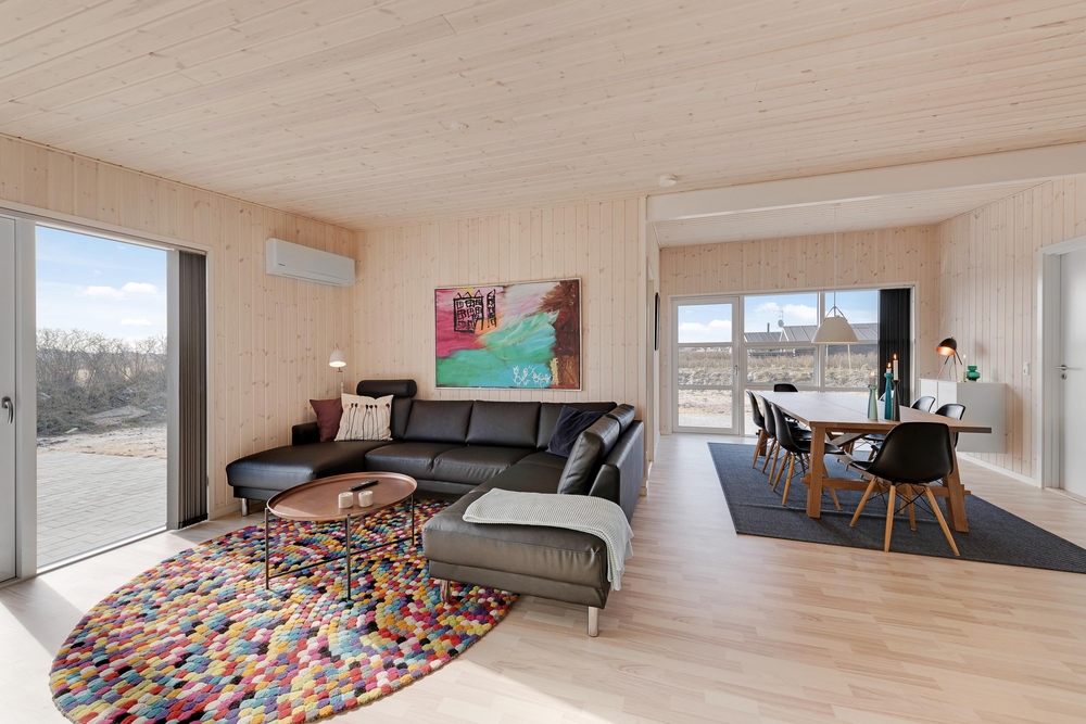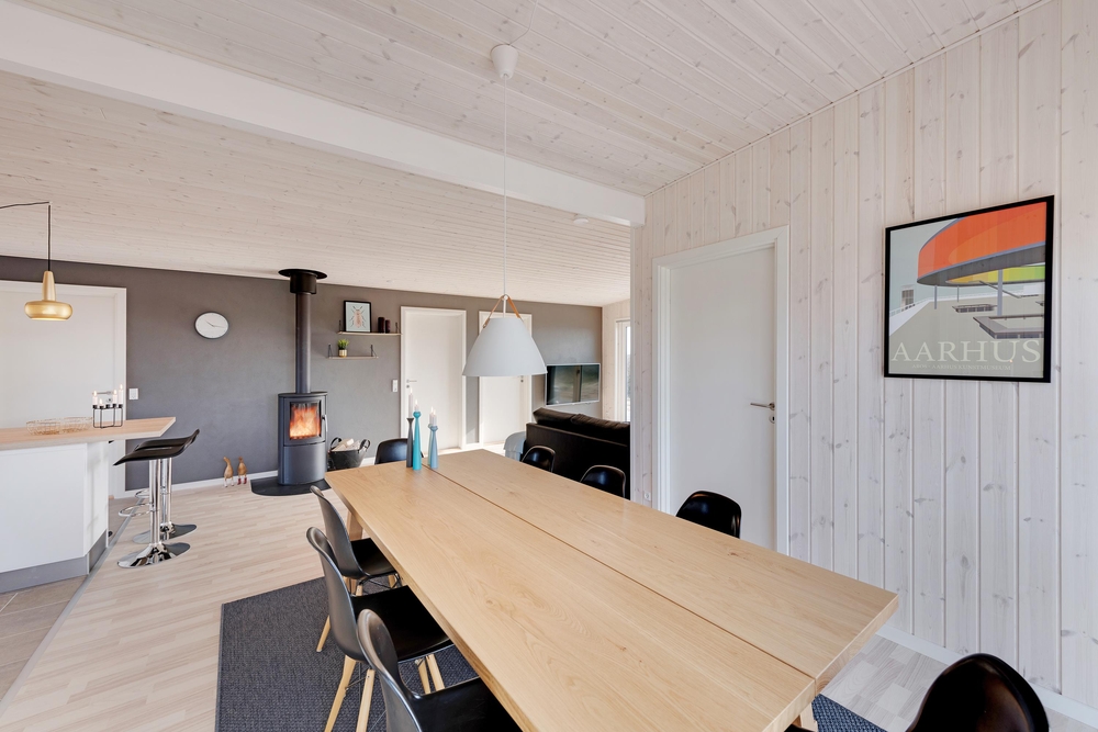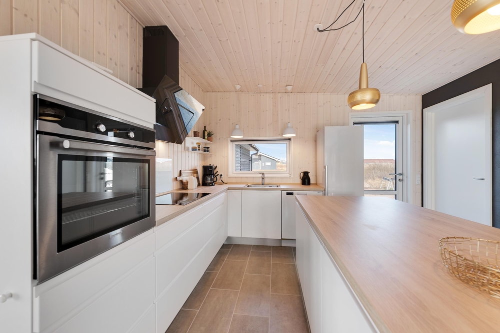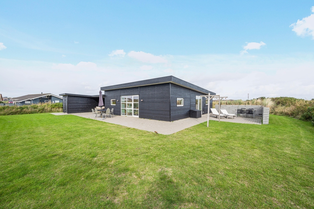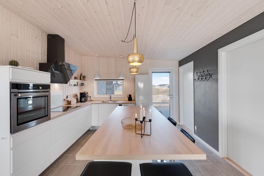 Velkommen i et lækkert og stilfuldt indrettet feriehus med den helt rigtige stemning. I det moderne hus med det lyse træværk og naturfarverne, vil I straks føle jer godt tilpas og komme i feriestemning. Her er der tænkt på det hele og ikke sparet på noget, I har både vaskemaskine og tørretumbler, og i det moderne smarte køkken koges der på induktionskomfur ? opvasken klarer maskinen naturligvis.