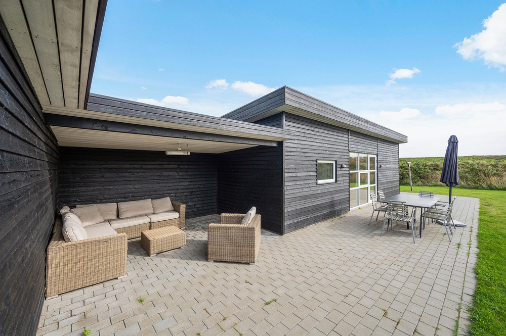 Imens stuens store lækre lædersofa indenfor lokker til at lægge fødderne op og gøre sig det bekvemt med en god bog eller til at tænde for det store fladskærms-tv og se en feelgod-film, lokker et ligeså hyggeligt sofahjørne udenfor til at tilbringe mange hyggelige timer. For optimal udnyttelse af terrassen står der nemlig i et dejligt overdækket læhjørne et lækkert udendørs loungesæt til jeres rådighed. Her er ikke kun det perfekte sted til eftermiddagskaffen, men også til at finde sammen om aftenen med en god flaske rødvin, lidt ost og kiks og diskutere verdenssituationen, ? eller måske bare småsnakke lidt om feriedagens hændelser, og lægge planer for den følgende dag.