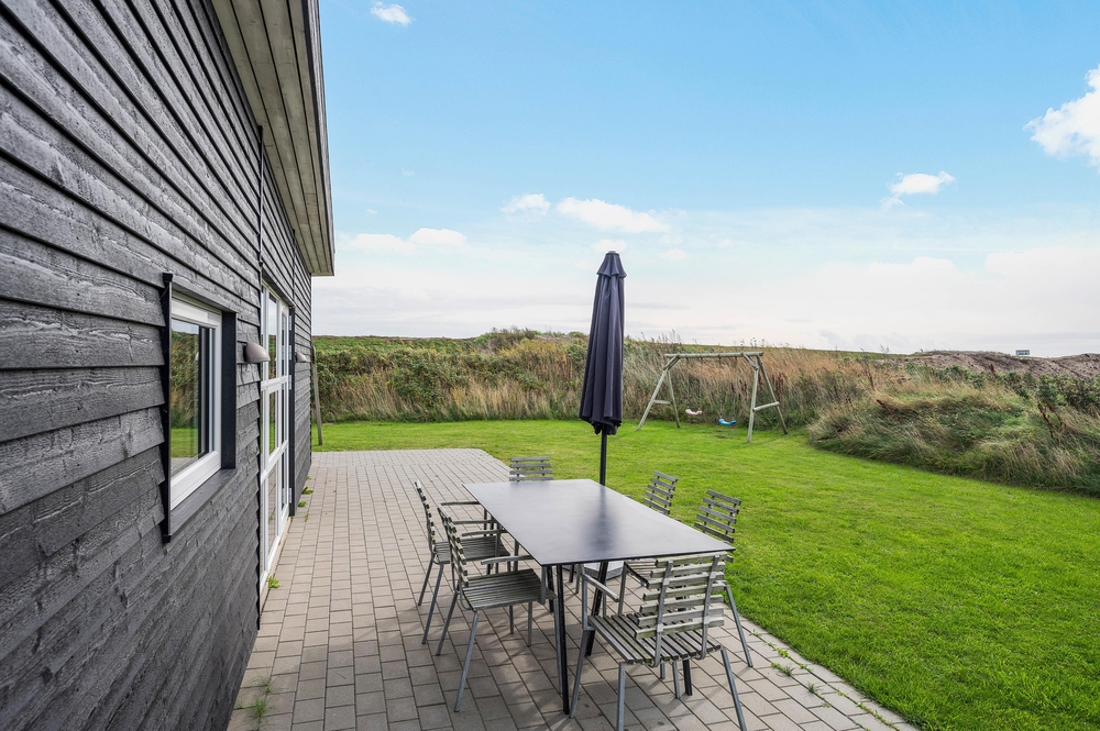 Sand Holms Vej 1 ligger på en dejlig grund med både sandkasse og gynger til børnene. Der er ikke langt til stranden og I kan sågar tage turen til den livlige ferieby Søndervig til fods.