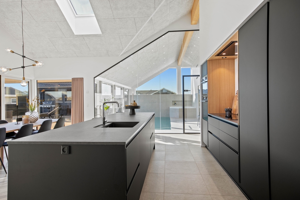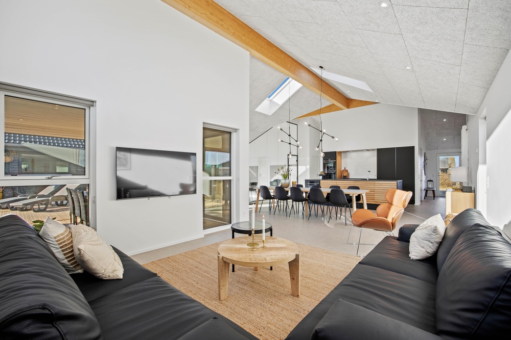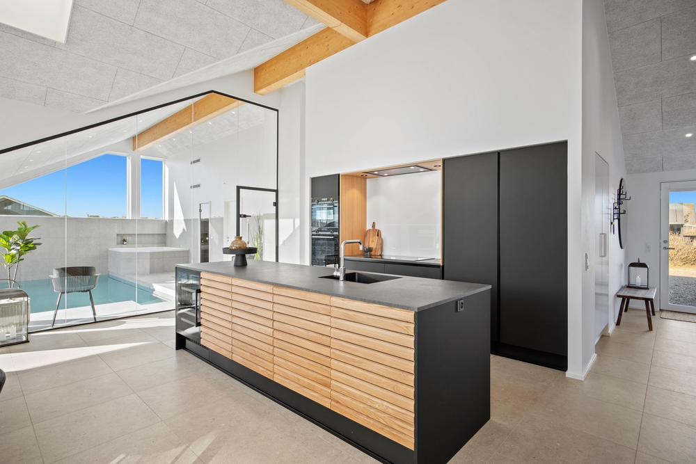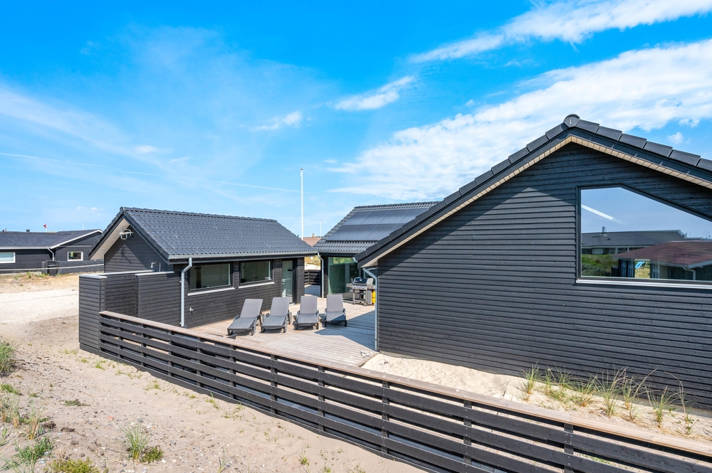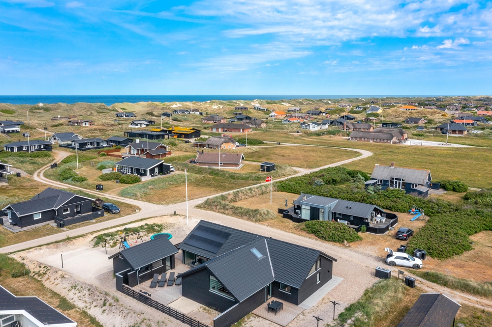 Er I på udkig efter et sommerhus, hvor I kan forkæle jer selv, og hvor der er masser af plads til børnene, så tag endelig et nærmere kig på poolhuset på Sand Holms Vej 8. Sommerhuset er på 180 m2 og ligger kun 400 meter fra havet. Her er alt, hvad der skal til for at holde en dejlig ferie ved Vestkysten.