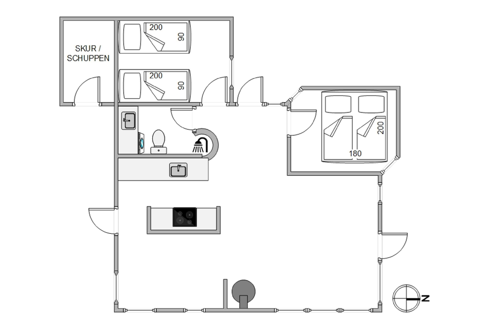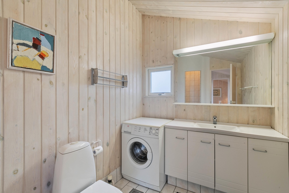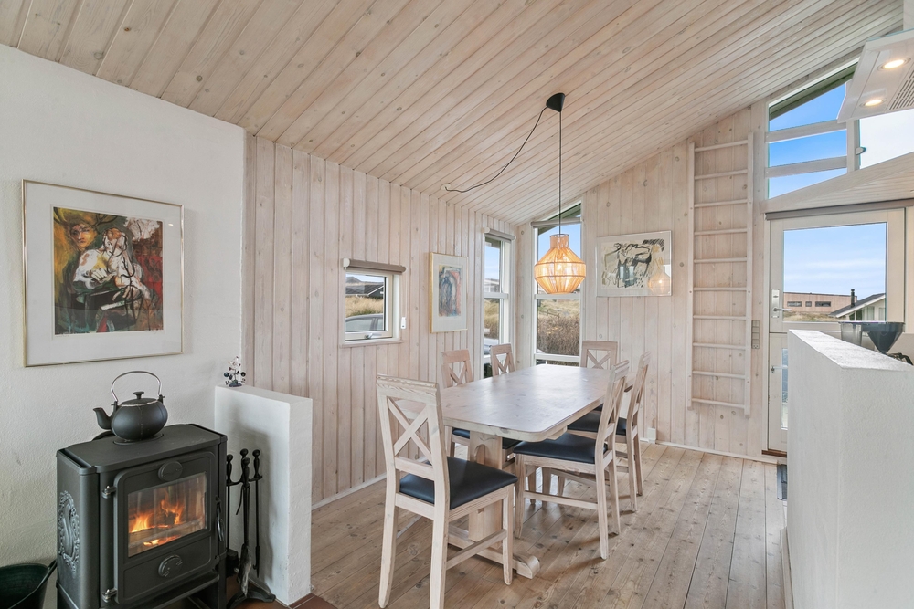 Feriehuset på Sand Holms Vej 88 er hyggeligt og venligt indrettet, og det ligger på en skøn naturgrund med kun få minutters gang til Vesterhavet. Somerhuset fordeler sig på 60 m2 og rummer fin plads til 4 personer, trods den mindre størrelse. Sommerhuset på Sand Holms Vej 88 fordeler sig på 2 soveværelser, hvoraf det ene har dobbeltseng og det andet 2 enkeltsenge. Derudover har huset et godt velindrettet badeværelse med vaskemaskine og gulvvarme. Opholdsstuen og køkkenet er i direkte forbindelse så alle kan følge med i madlavning og ferieplanlægningen. Her i stuen finder I også husets brændeovn, hvor I rigtigt kan slappe af foran de knitrende flammer med benene oppe.