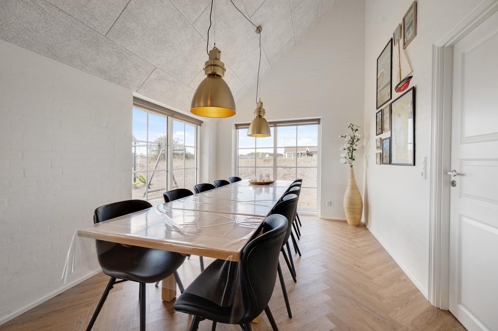 På Sand Holms Vej 9 i Søndervig, kun 350 meter fra stranden, ligger dette store og moderne aktivitetshus, som har plads til 10 personer, og som heller ikke sætter nogen begrænsningerne for, hvad I ønsker at foretage jer under jeres ferie. Det bedste af det hele er, at jeres to hunde også er meget velkomne her. Om det er en pool med modstrømsanlæg, en udendørsspa eller et billardbord, så er alt til rådighed. Brændeovnen i opholdsstuen sørger for en hyggelig atmosfære om aftenen.