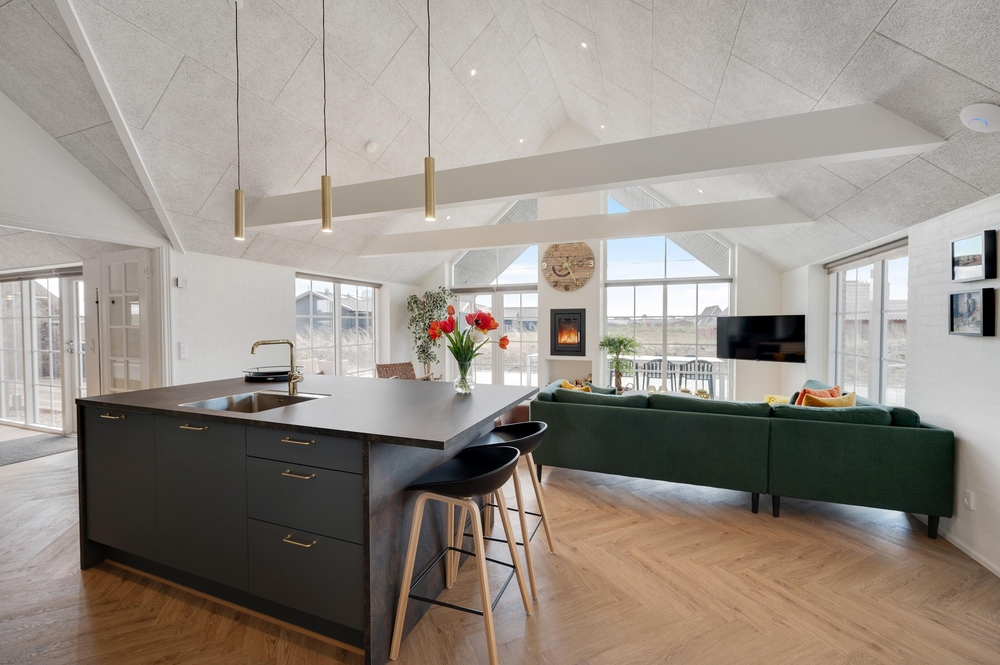 Når I ankommer til feriehuset, vil I hurtigt bemærke, at alt hvad I har brug for til en god ferie, er der. Det store opholdsrum med det åbne køkken bliver stedet, hvor I alle samles for at tilberede lækre måltider. Efter måltidet klarer opvaskemaskinen opvasken, så I ikke behøver at bruge så meget tid på husarbejdet.