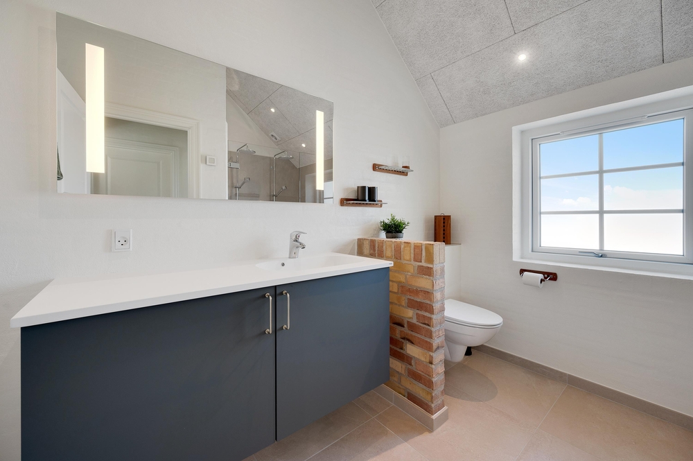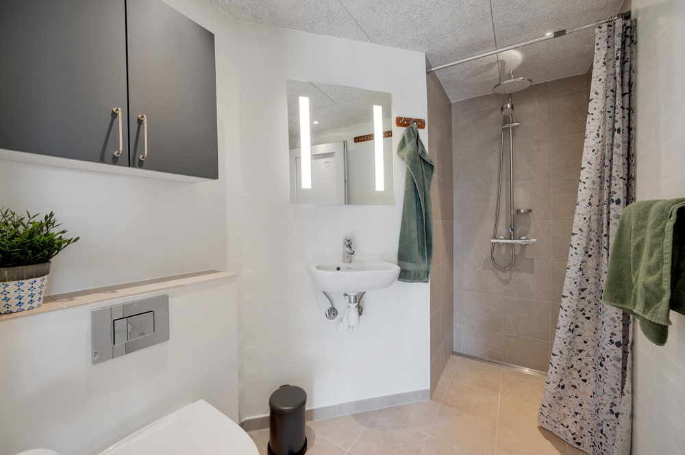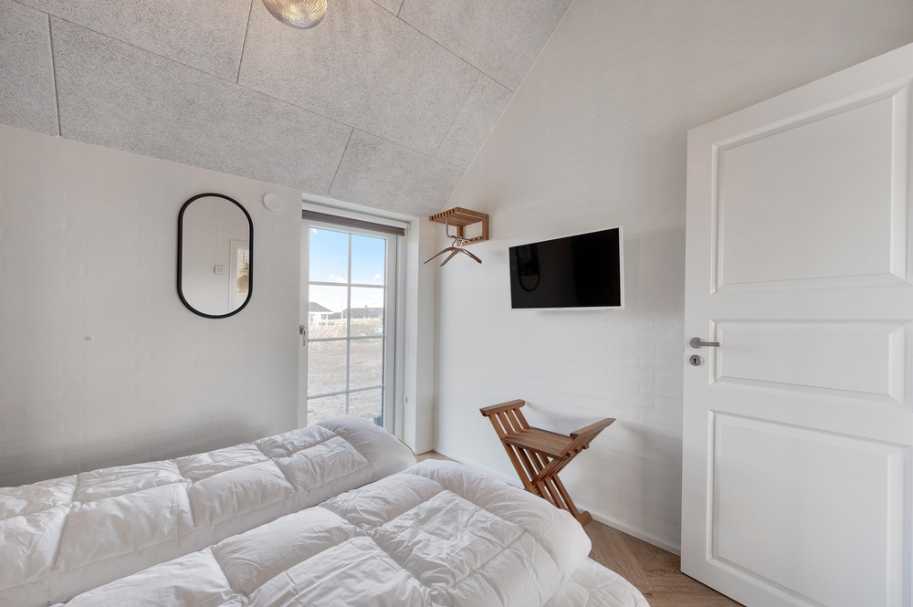 Der er fire soveværelser i feriehuset, hvoraf to har en dobbeltseng og to har to enkeltsenge. Der er to badeværelser for at undgå stress på ferien, hvilket er perfekt, hvis man rejser med to familier. Badeværelserne og stuen er udstyret med gulvvarme, som drives af en energibesparende luft-til-vand-varmepumpe. For at reducere jeres bagage er der både vaskemaskine og tørretumbler i feriehuset.