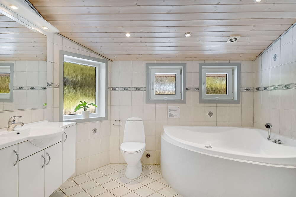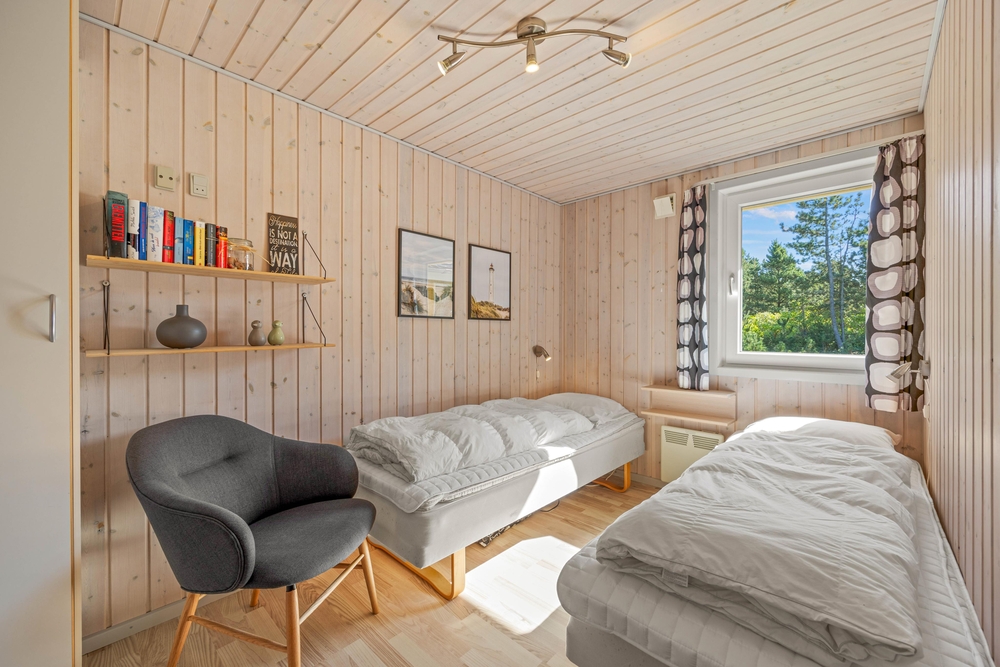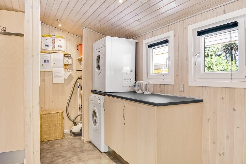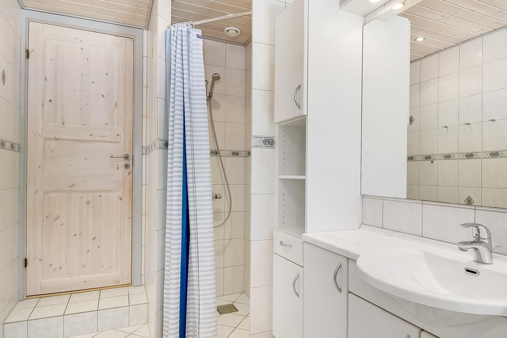 3 gode soverum, 2 af dem med dobbelt-, det sidste med 2 enkeltsenge, lover god uforstyrret nattesøvn. Med både badeværelse og gæste-wc er den gode feriestemning sikret. I baggangen er der, sikkert til stor glæde for især småbørnsfamilier, både vaskemaskine og tørretumbler.