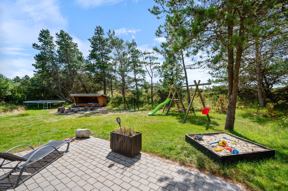 Selvfølgelig tager man til Vestkysten for at tilbringe tiden ved havet. Men på Sandtoftevej 13 kan det måske ske, at familien heller vil hygge på grunden rundt om huset. Her er der masser af legeredskaber til de små og lidt større og mange dejlige hyggekroge rundt om huset og på grunden. Så lad bare børnene tumle i haven, find en god bog og sæt jer til rette på terrassen. Her er der gode læhjørne, hvis vestvinden skulle bide lidt, men også dejlige skyggefulde hyggehjørner, når julisolen sådan rigtig brænder.