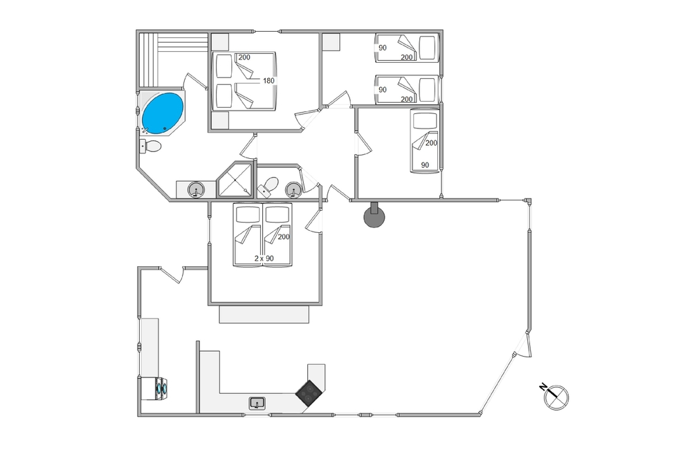 Med både sauna og spa og et ekstra gæstewc er det i dette fine hus intet problem, rigtigt at få slappet af og komme ned i gear. Her har I de perfekte rammer til en rigtig hyggelig ferie, med et dejligt stort åbent køkken og en stue med god plads til familiehygge med både brændeovn og fladskærms tv.